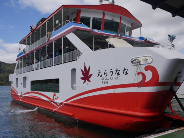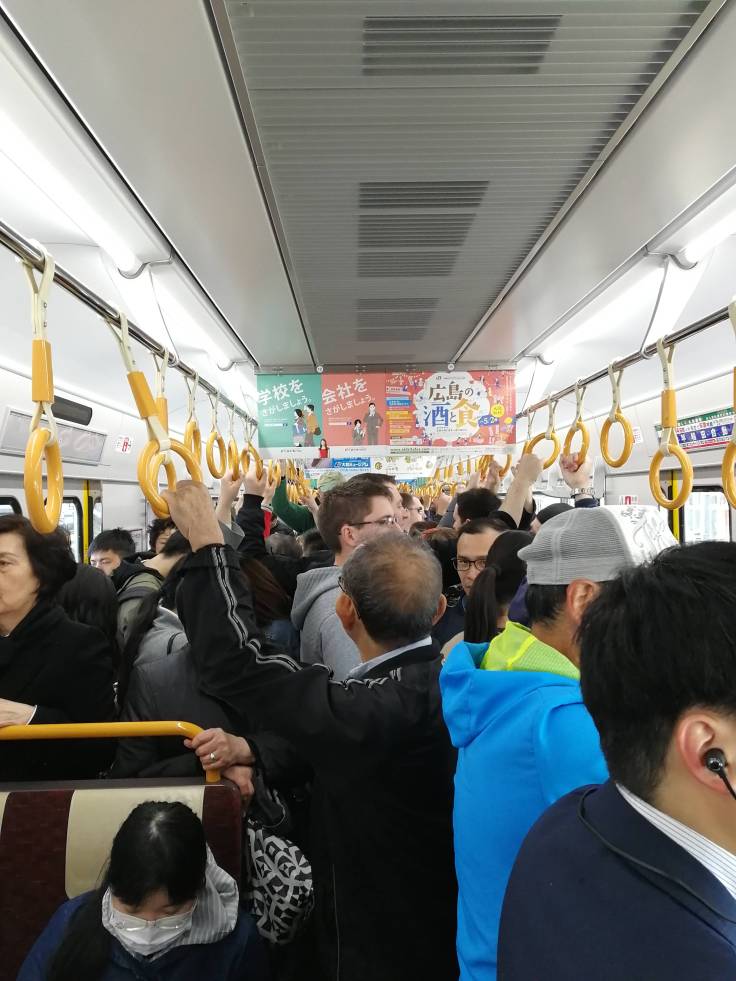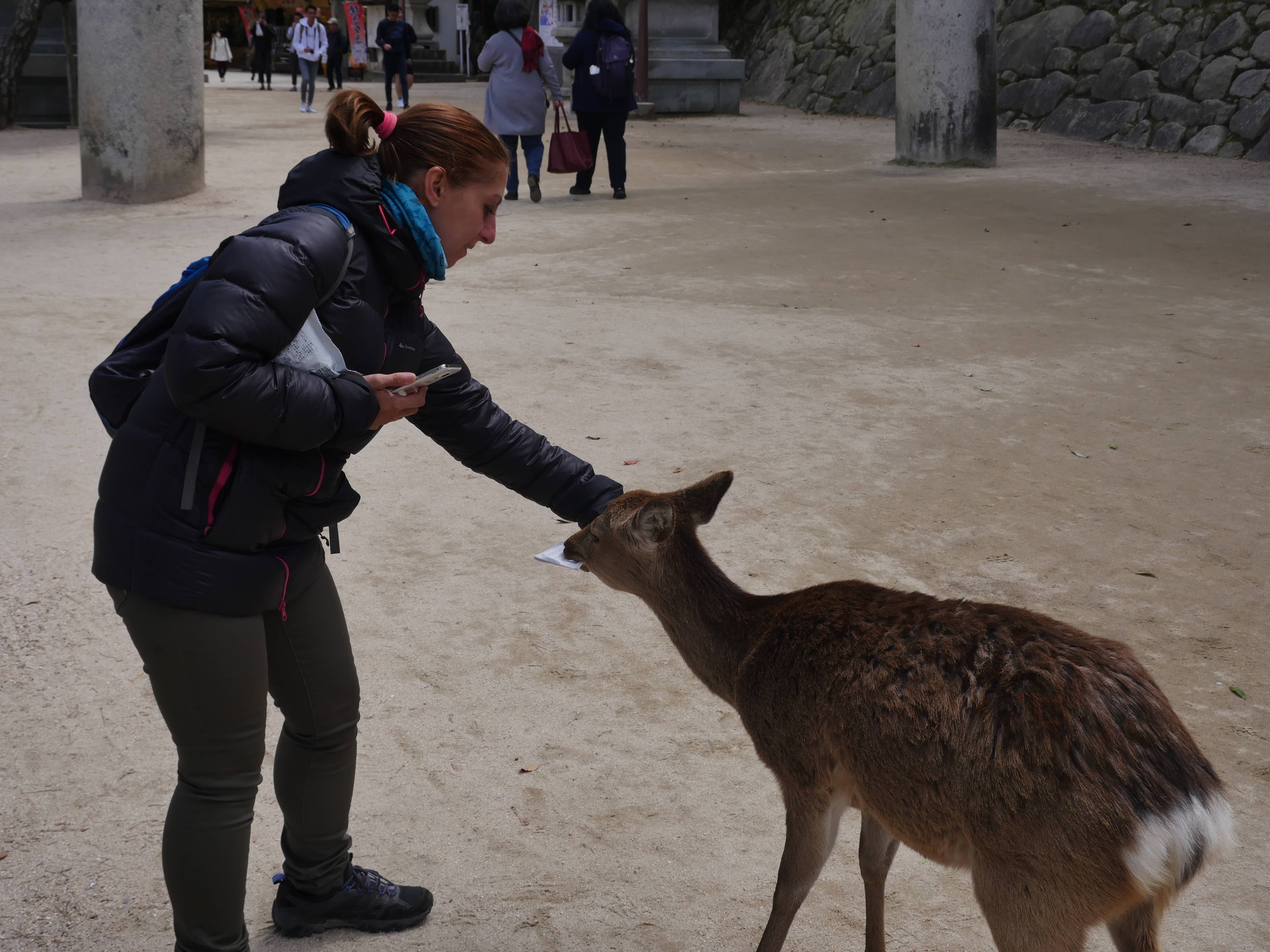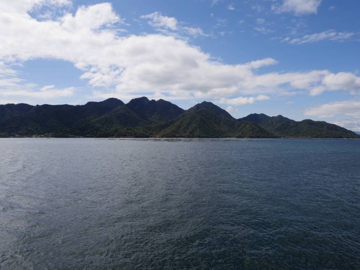 Malgré le fait que l’on y soit allé en semaine, le train pour y aller est plein à craquer ! Cela n’est pas étonnant non plus car Miyajima est classé comme étant l’un des 3 plus beaux sites du Japon. Une fois arrivé, tout ce petit monde se dirige vers le ferry, et nous voilà donc partis, sous un soleil légèrement voilé, rejoindre l’île de Miyajima !