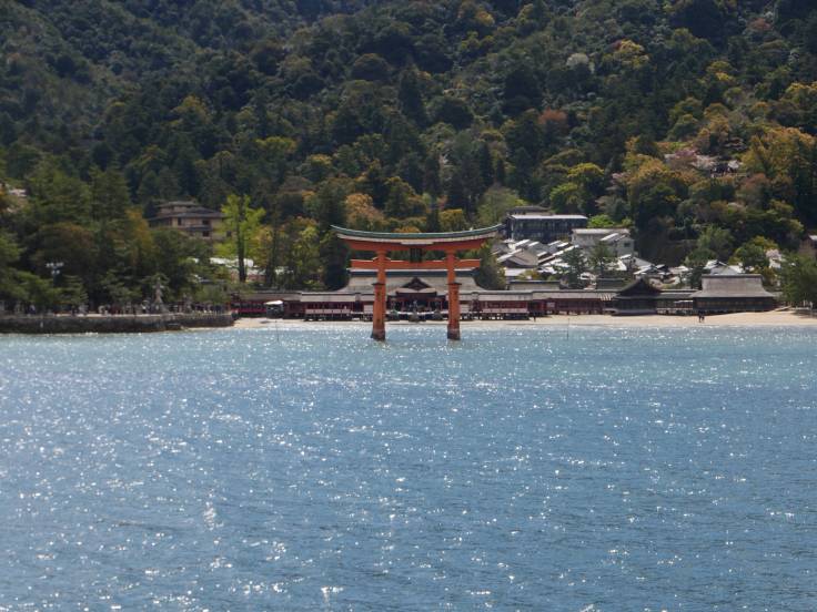 Le Tori flottant, battit sur pilotis dans le sable, résiste depuis une époque très lointaine, 1168, aux différentes marées. Vraiment magnifique… Jusqu’à ce que des gens absolument égoïstes se mettent en dessous pendant 10min pour faire des photos, alors que 200 personnes attendent… INSUPPORTABLE ! Quand on a repris le ferry, on a pu voir de loin le Tori avec au moins 300 personnes autour…