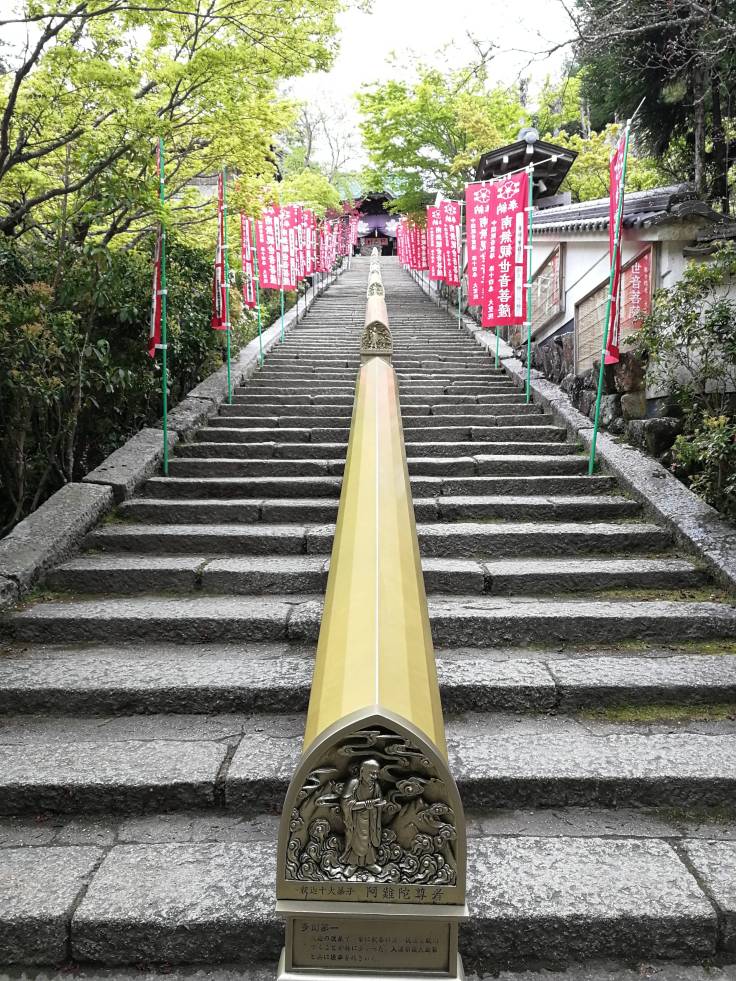 Maintenant, les choses sérieuses commencent, avec l’ascension du Mont Misen ! 585m d’altitude et environ 1h30 de montée dans la forêt. Beaucoup beaucoup de marches, avec des hauteurs différentes. Personnellement, j’adore ça !!!… Ria un peu moins 🙂