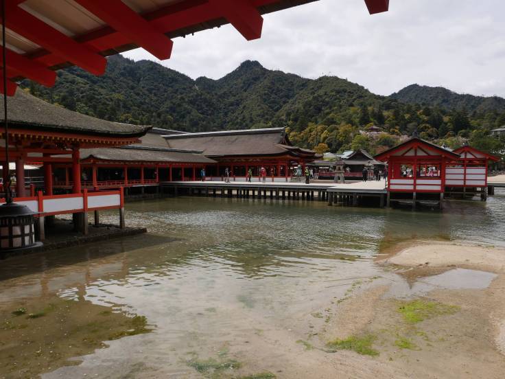 L’île est très, voire UNIQUEMENT, touristique. On commence donc notre parcours par la rue commerçante, qui est plutôt sympa. Puis on se dirige vers le temple Itsukushima, sur lequel on a une superbe vue sur le Tori. Le Tori est l’attraction principale de l’île, mais nous y reviendrons plus tard.