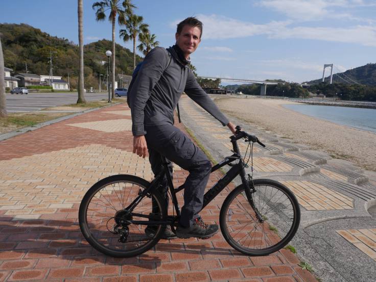 Après avoir pris le tramway, le Shinkansen et un train local, nous voilà arrivés à Onomichi ! On loue nos vélos près de la gare et bizarrement ils sont en excellents état ! Cela nous change des autres pays d’Asie où on nous donnait des épaves avec limite des roues carrées… 🙂 Par contre c’est tout de même pas donné : 10 euros la journée et 10 euros si on le dépose ailleurs ! On ne fait pas une boucle, on n’a pas trop le choix. Finalement les autres pays d’Asie n’étaient pas si mal… 🙂