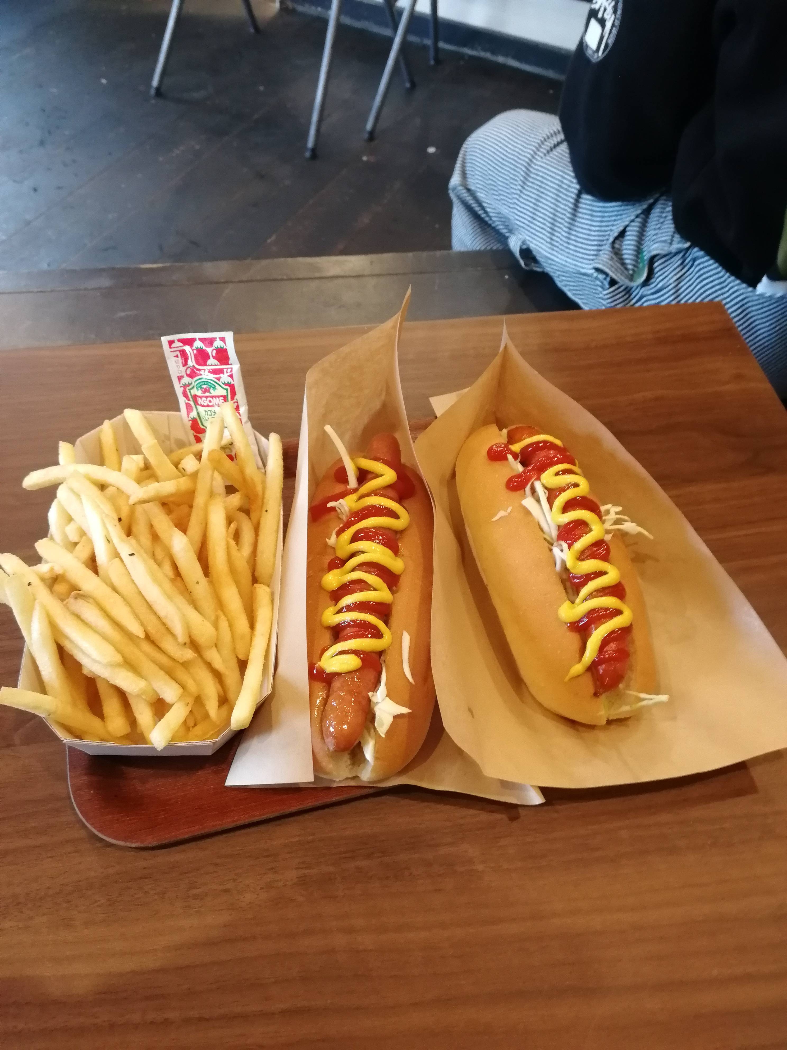 En sortant, un petit hot-dog pour nous remonter le moral, car la pluie est toujours là… 😦