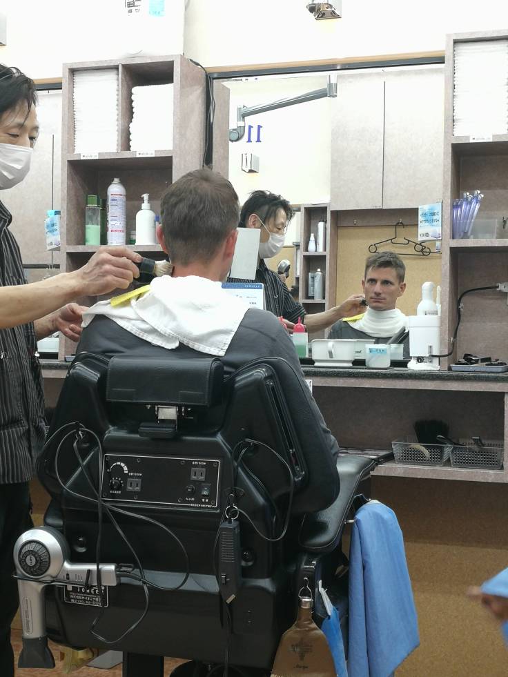 Pour être le plus aérodynamique possible, un petit ajustement capillaire chez le coiffeur est nécessaire ! L’expérience vaut vraiment le coup ! Ils coupent d’abord les cheveux, puis ils les lavent et enfin ils finalisent la coupe. Tout l’inverse de nous ! Ce n’est pas plus mal, car au moins on n’a pas plein de petits cheveux qui restent sur la tête.