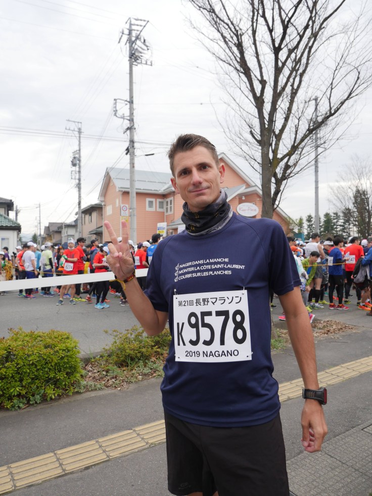 L’un des seuls qui pouvait coller avec notre itinéraire était celui de Nagano au Japon ! Courir sur les traces des JO d’hiver de 1998 et les mythiques commentaires de Pierre Fula : « Ici à Nagano« . Préparer un marathon pendant un tour du monde n’est pas chose facile. On bouge tous les deux ou 3 jours et on marche souvent toute la journée. Au cumulé depuis début janvier, je dois être à environ 20h d’entraînement, ce qui est ridicule pour une épreuve pareil !
