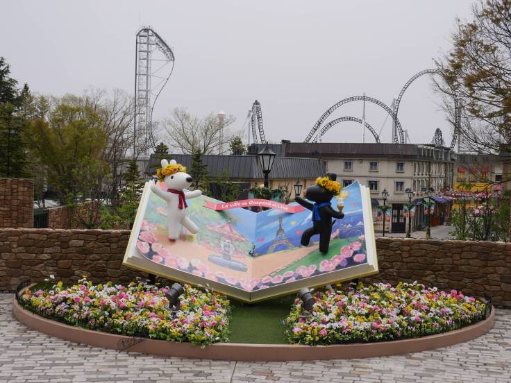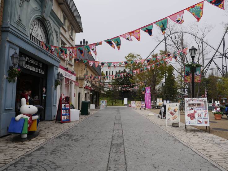 Le parc n’est pas aussi grand que Disney ou Asterix mais il est condensé et optimisé ! Pour les tickets, on a le choix : soit un pass journée à 5700 yens, ce qui est pas donné, soit prendre une entrée gratuite et ensuite on paye à l’attraction. Mais vu le prix des bonnes attractions, genre 1500 yens, le pass journée est vite rentabilisé. Après nos déboires de bus de nuit, le budget est plus restreint. Donc pour nous ça sera entrée gratuite sans attractions. Ce système d’entrée gratuite et attractions payantes est vraiment bien car au moins on peut passer la journée avec Jérôme, Émilie et les enfants sans se ruiner.