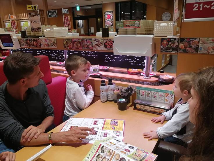 Le soir, fort d’une nouvelle énergie, on trouvera un restaurant type « Uebo Sushi« . Les enfants ont adoré voir toutes les petites assiettes arriver sur le petit train 🙂