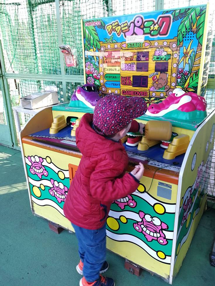 Avant de rentrer, on s’est arrêté à un Batting Center. C’était TOP et ça défoule bien ! 300 yens les 25 lancés. Vitesse 90km/h, ce n’est pas facile ! On n’a pas fait beaucoup de Home Run mais plutôt beaucoup des balles rasantes… Les enfants préféraient de leurs côtés taper sur des crocodiles 🙂