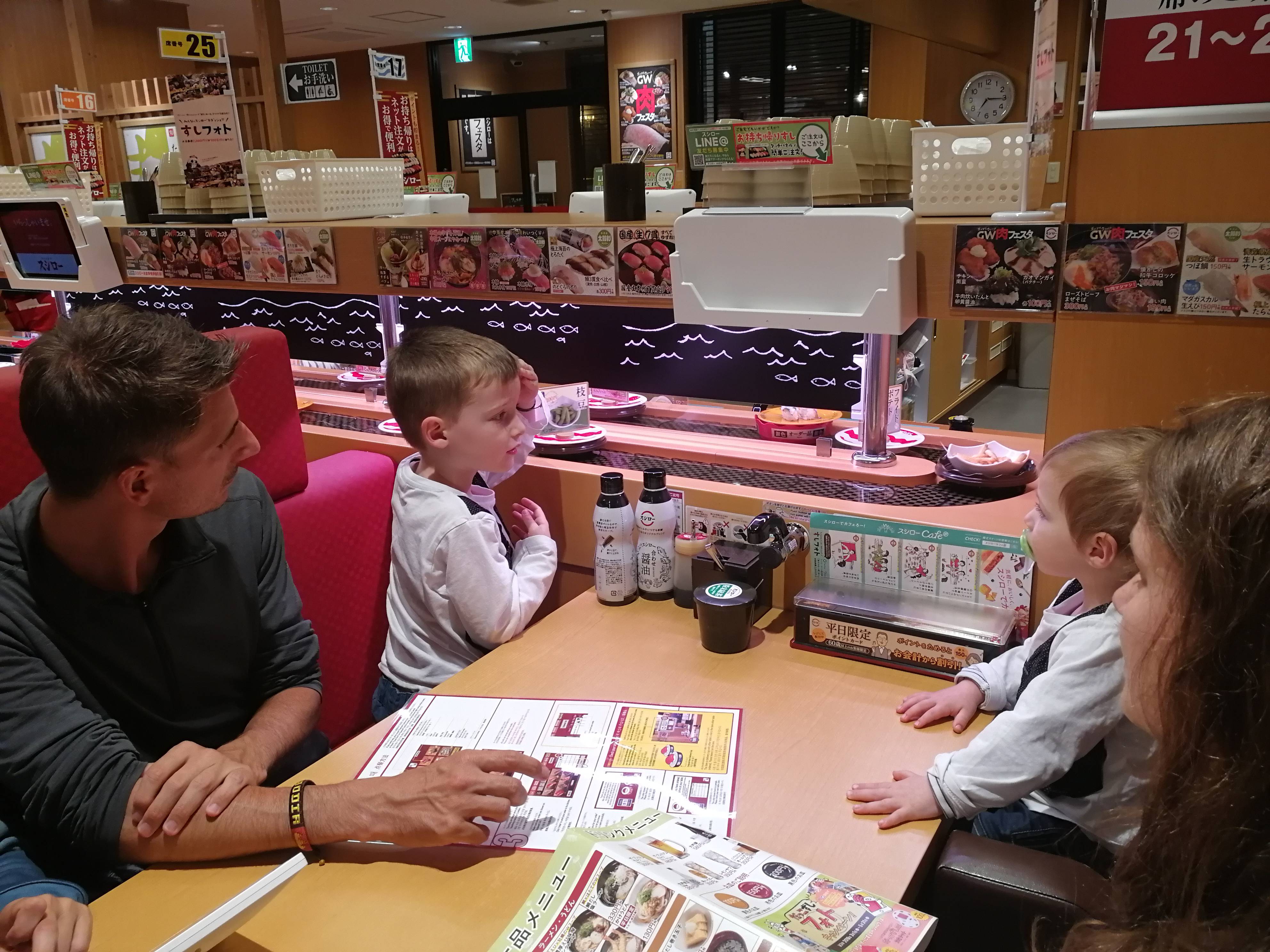 Le soir, fort d’une nouvelle énergie, on trouvera un restaurant type « Uebo Sushi« . Les enfants ont adoré voir toutes les petites assiettes arriver sur le petit train 🙂
