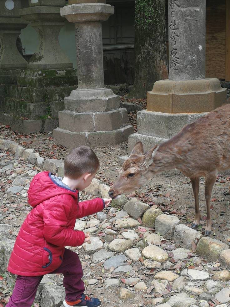 Le parc de Nara est connu pour ces nombreux daims en liberté, et on peut dire que la légende est vraie ! Il y en a partout ! C’est super sympa à voir. Il était également possible d’acheter des petites galettes de céréales dans les nombreux petits stands pour leurs donner à manger. Ce n’est pas quelque chose que je cautionne, car nourrir les animaux c’est mal, mais au moins c’est toujours mieux que les masses de touristes asiatiques qui donnent tout et n’importe quoi (pain, gâteaux, bonbons, chocolat,…) !