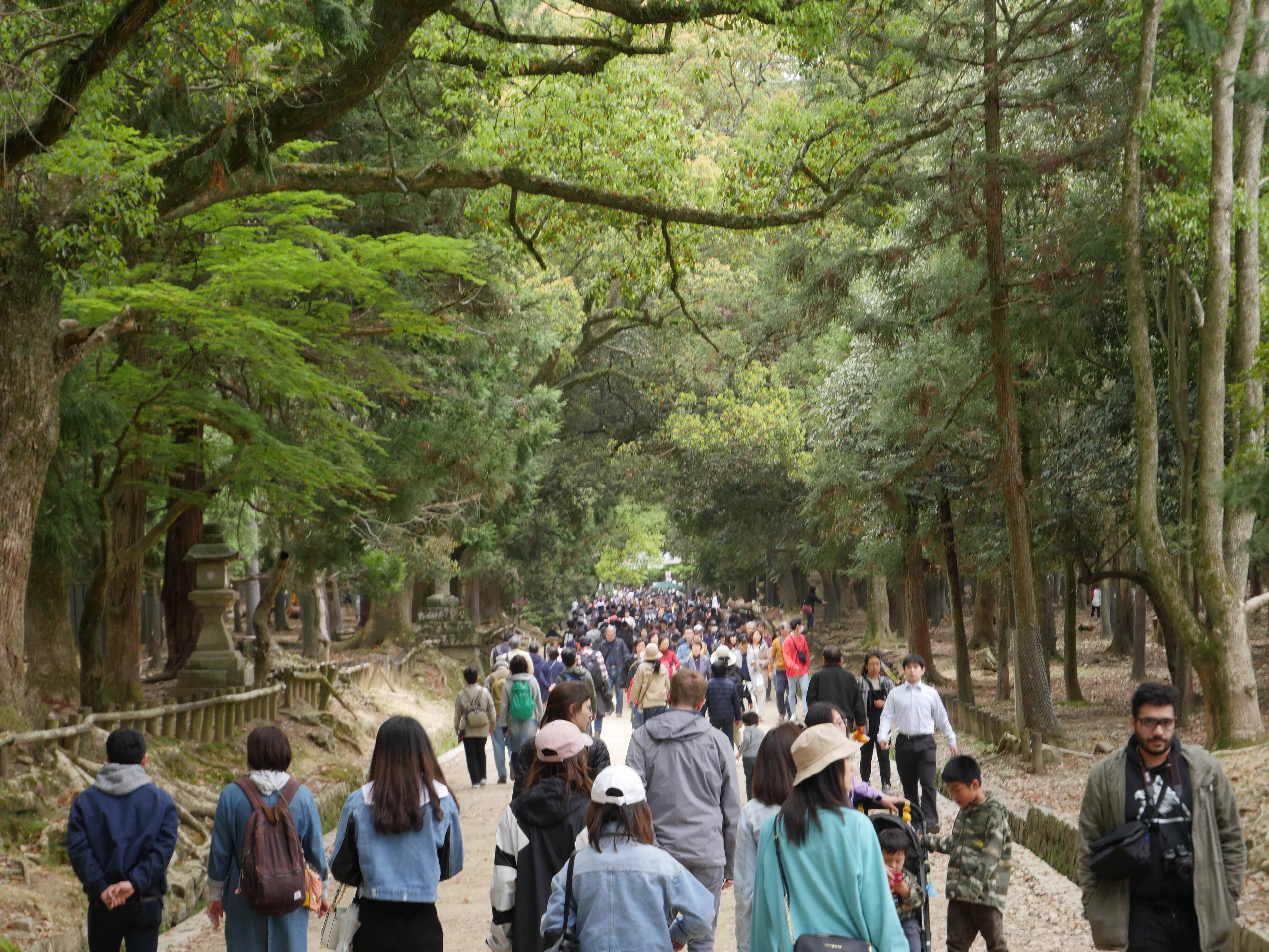 C’est 20min plus tard que l’on arrive dans la grande allée qui mène au temple Kasuga Shrine. Et bizarrement, ou pas, c’est archi-bondé de monde ! On a rarement vu autant de touristes japonais réunis au même endroit.