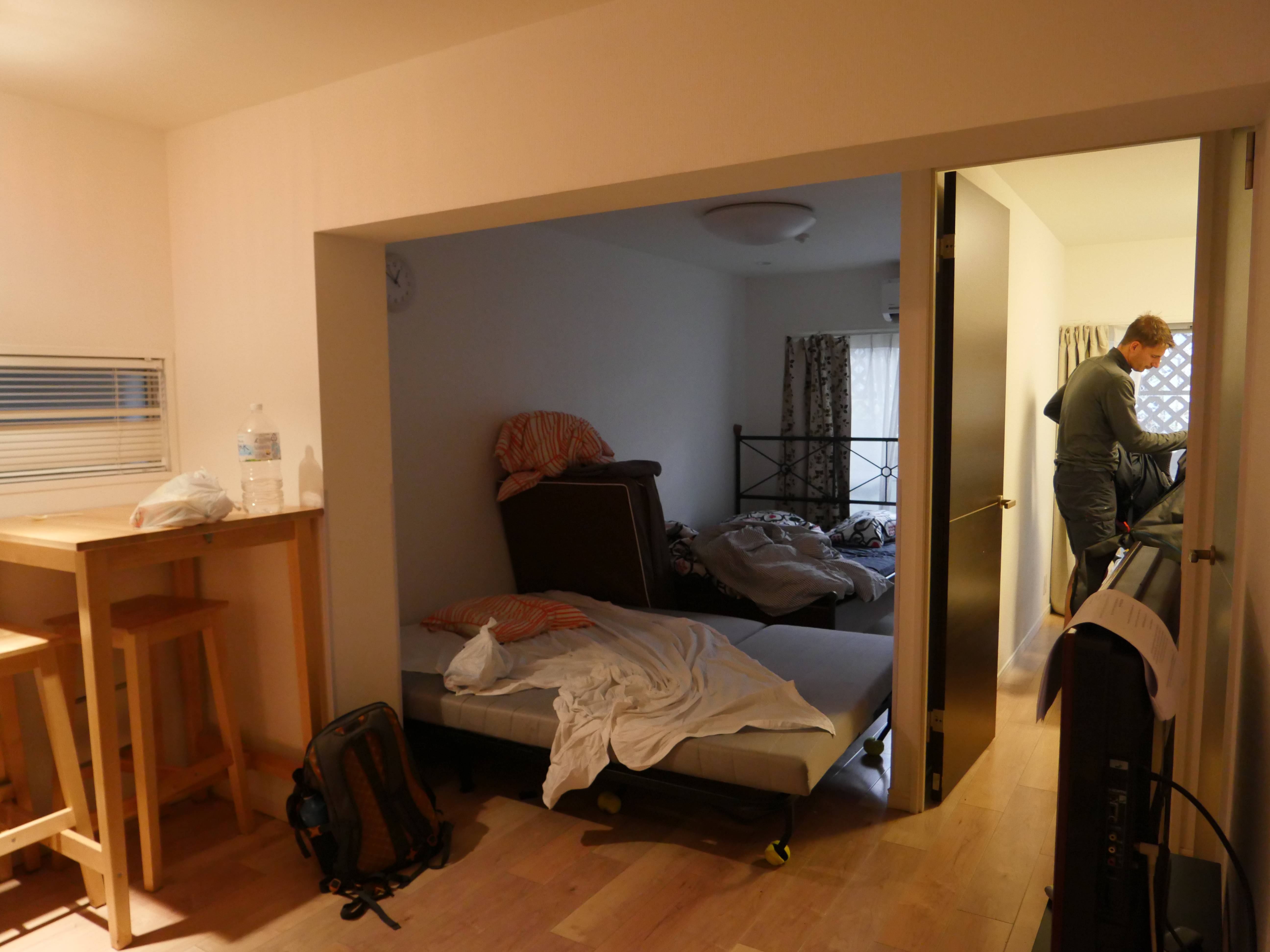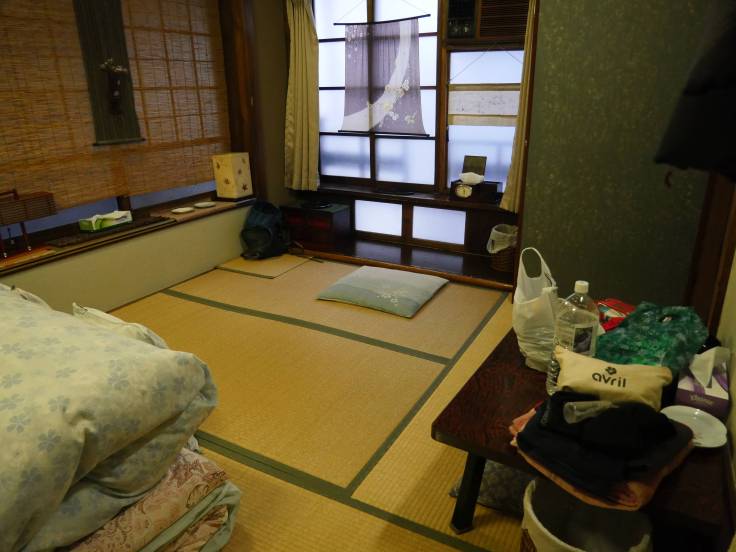 Notre logement pour finir… A coup sûr le pire qu’on ait eu au Japon. Pour nos dernières nuits ce n’est pas de chance. La chambre a l’air pas mal. Pas trop petite et avec le minimum. Mais c’était avant que la nuit arrive. Le bruit de la rue et celui des climatisations en face de la chambre, super froid de l’air passait sous la fenêtre, impossible de mettre le chauffage tellement il faisait du bruit. Et le pompon : pas de rideau… A 5h du matin, il faisait jour dans la pièce !! Vraiment une nuit de rêve ! Le matin, la dame, très gentille, a vu le désarroi dans nos yeux et a accepté notre demande pour changer de chambre. Ouf car on aurait pas dormi une nuit de plus ici.