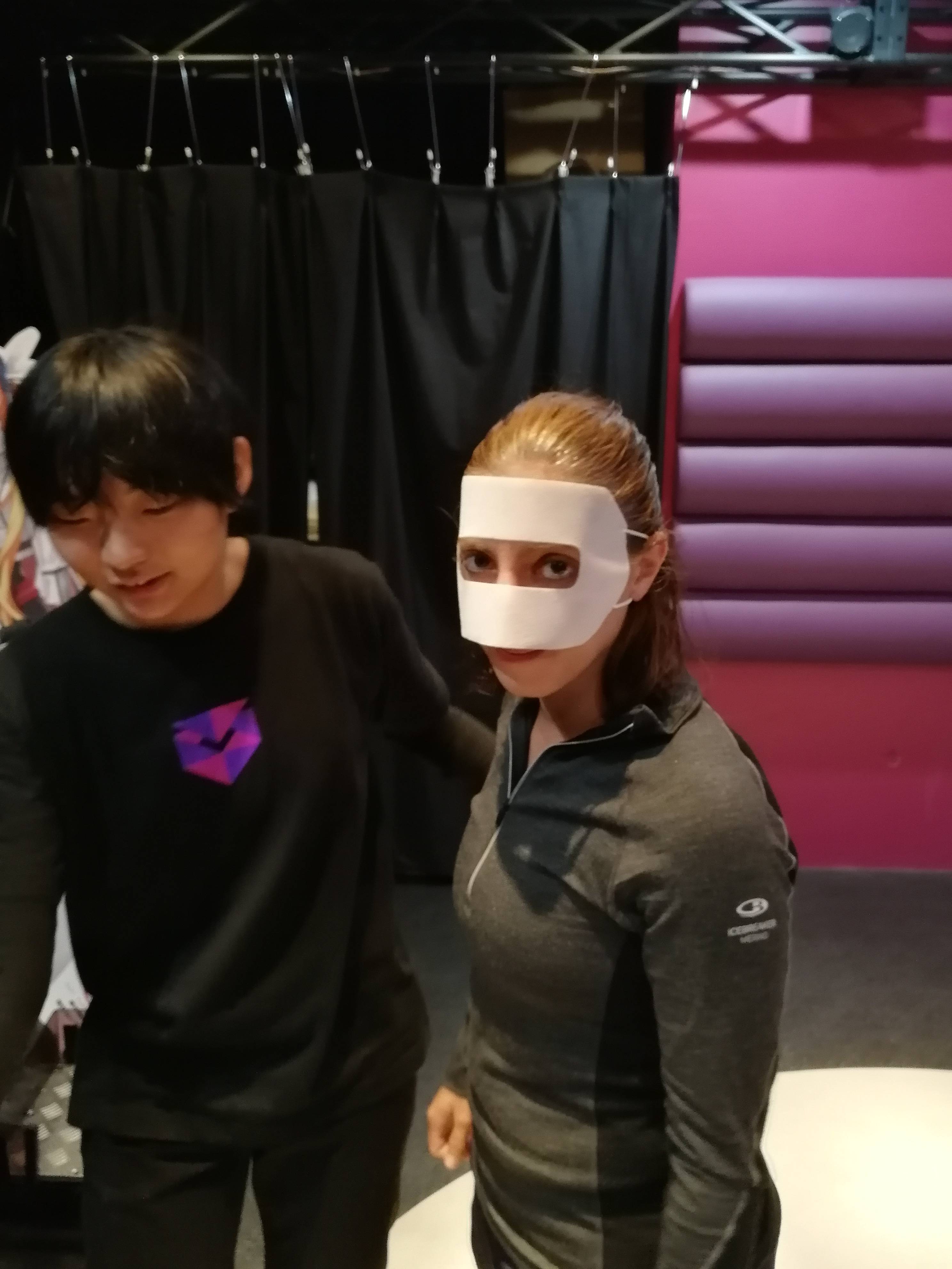Et encore une fois, c’était vraiment super. Même si la nourriture n’était pas vraiment génial, c’est le moins que l’on puisse dire, il y avait des salles de jeux interactives. On met un masque et on est immergé dans le jeu en 3D. Assez déstabilisant au début mais plutôt sympa à faire. Et non Ria ne s’est pas déguisée pour braquer une banque :-).