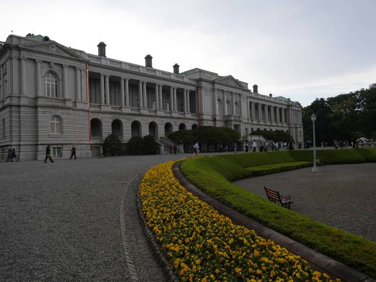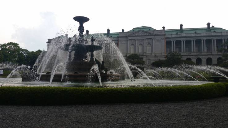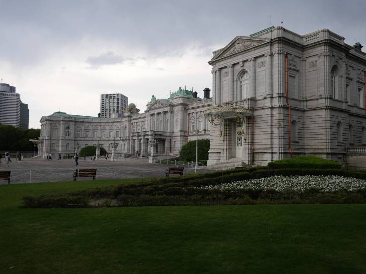 On a prévu d’aller voir le palais d’Akasaka. C’est le lieu où les diplomates et présidents étrangers sont accueillis pour les sommets diplomatiques. Le prix est un peu excessif mais cela vaut vraiment le coup ! L’architecture est splendide et est très inspirée de l’époque de Louis XV. Les lustres, les colonnes de marbre, les tapisseries,… Tout est nickel chrome 🙂 Alors bien sur, la visite est très réglementée et il ne faut pas faire un pas de travers sous peine d’être réprimandé par les nombreux vigiles. Les photos à l’intérieur sont interdites… Dommage.
