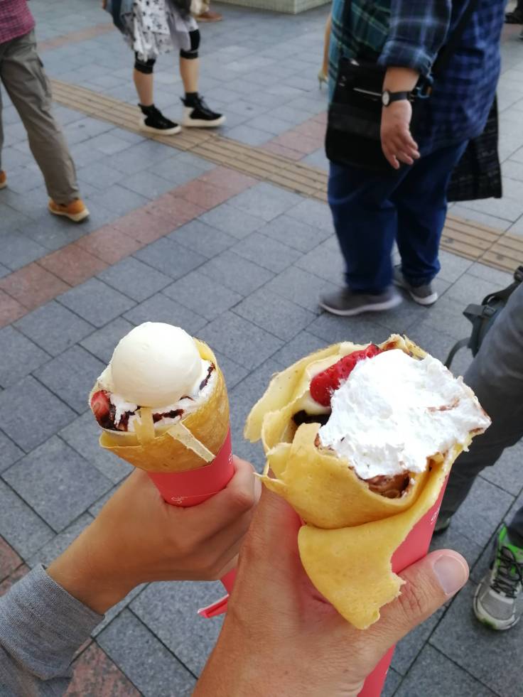 L’après-midi sera beaucoup plus décontractée dans les rues de Harajuku en mangeant une énorme crêpe-glace !