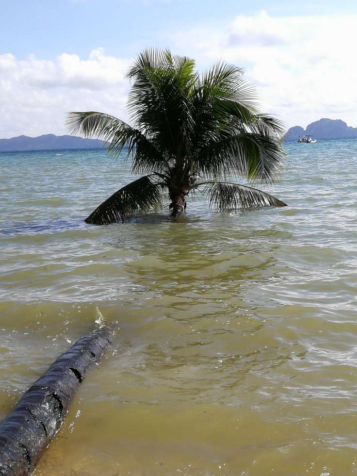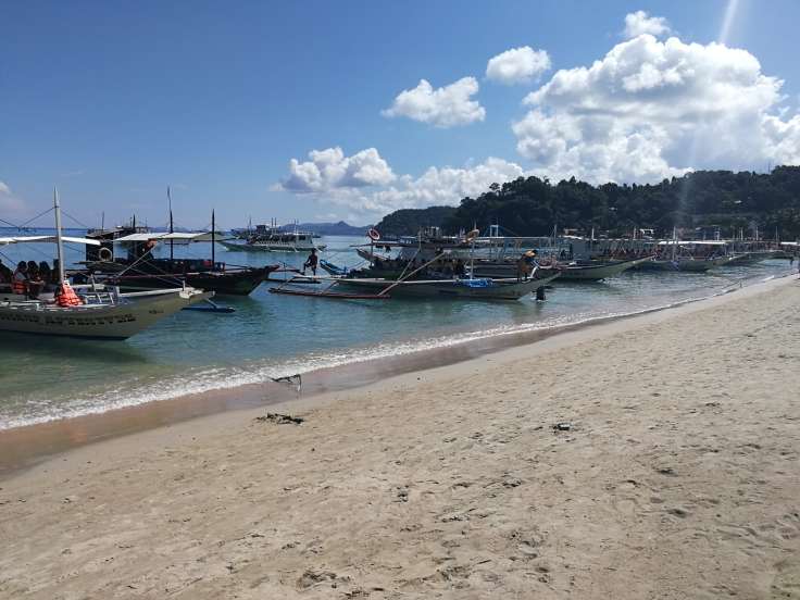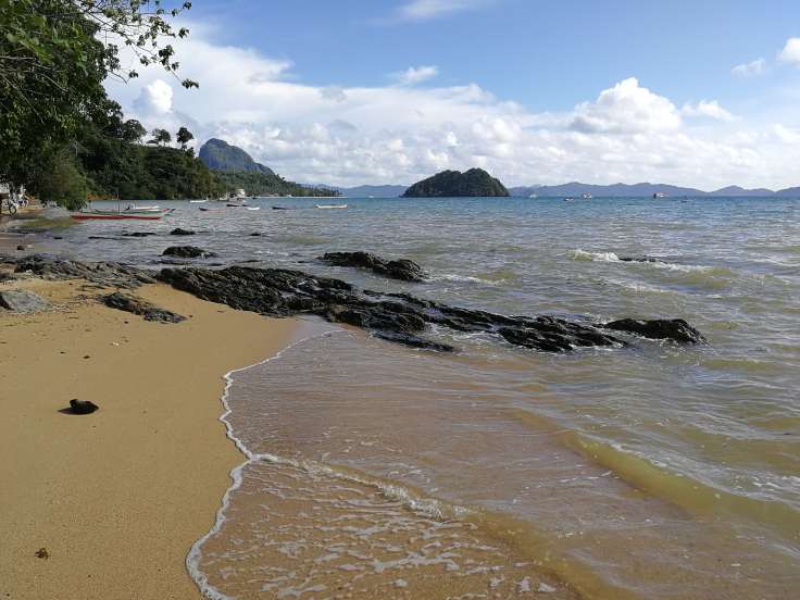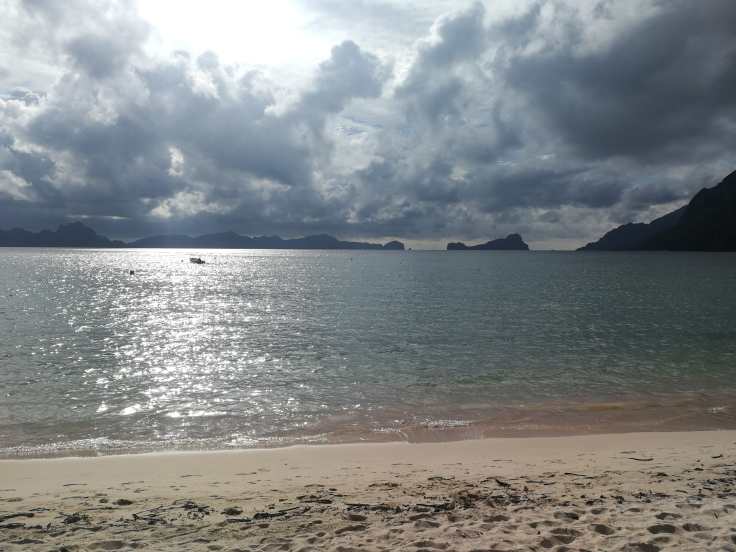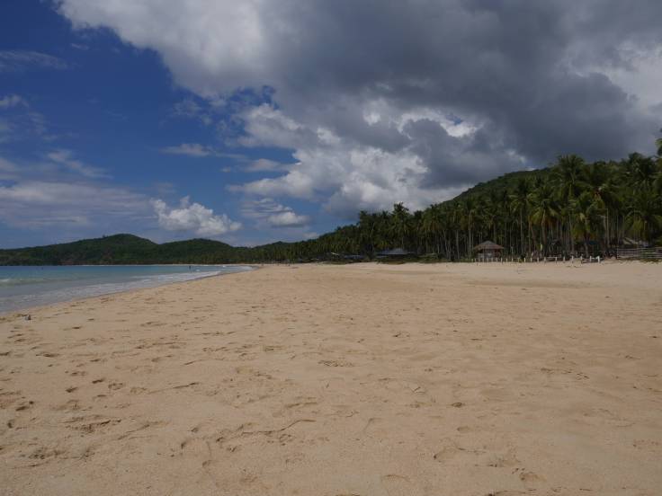 Une fois n’est pas coutume depuis notre arrivée aux Philippines, à peine arrivée il pleut ! Bon heureusement cela n’aura pas duré longtemps. La plage est vraiment très belle et bizarrement il n’y a pas tant de monde que ça (ils sont sûrement tous en excursions) :-).