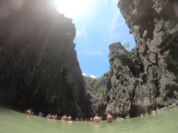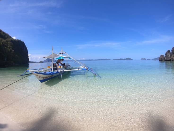 3h30 de traversée avec une climatisation à fond les ballons, de quoi attraper une grippe/pneumonie, et de la houle à me rendre malade… nous voilà arrivés sous le soleil de El Nido !
