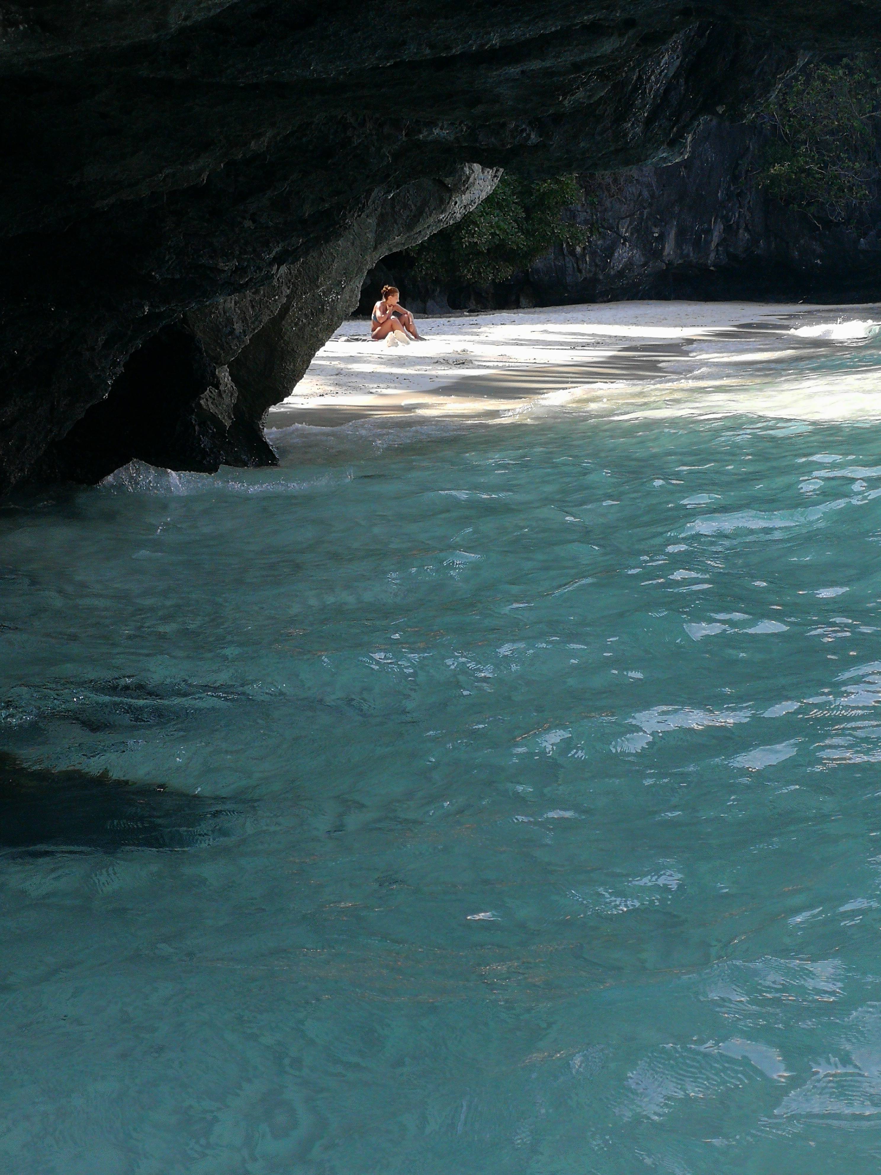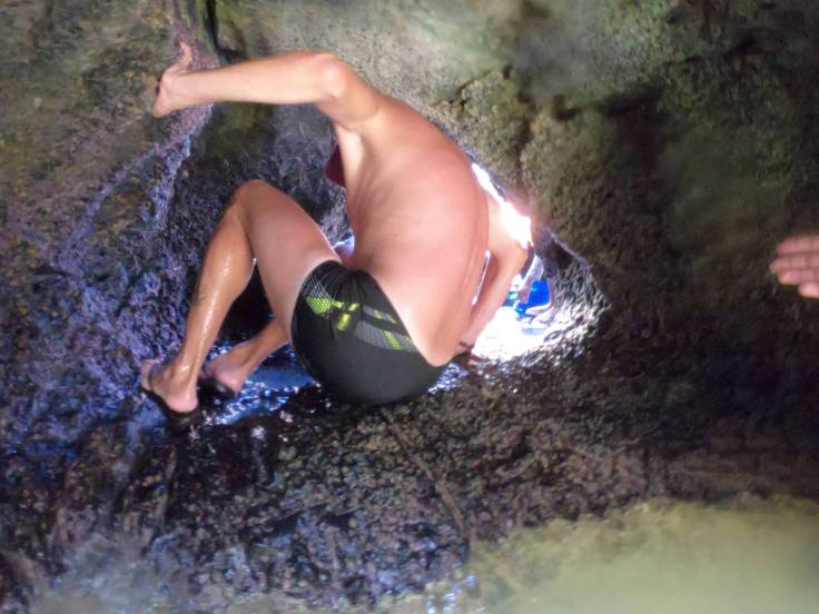 Une fois à l’intérieur, c’est tout petit, l’eau est trouble, par contre la vue est pas mal entre les falaises. C’est sympa mais pas ouf non plus.
