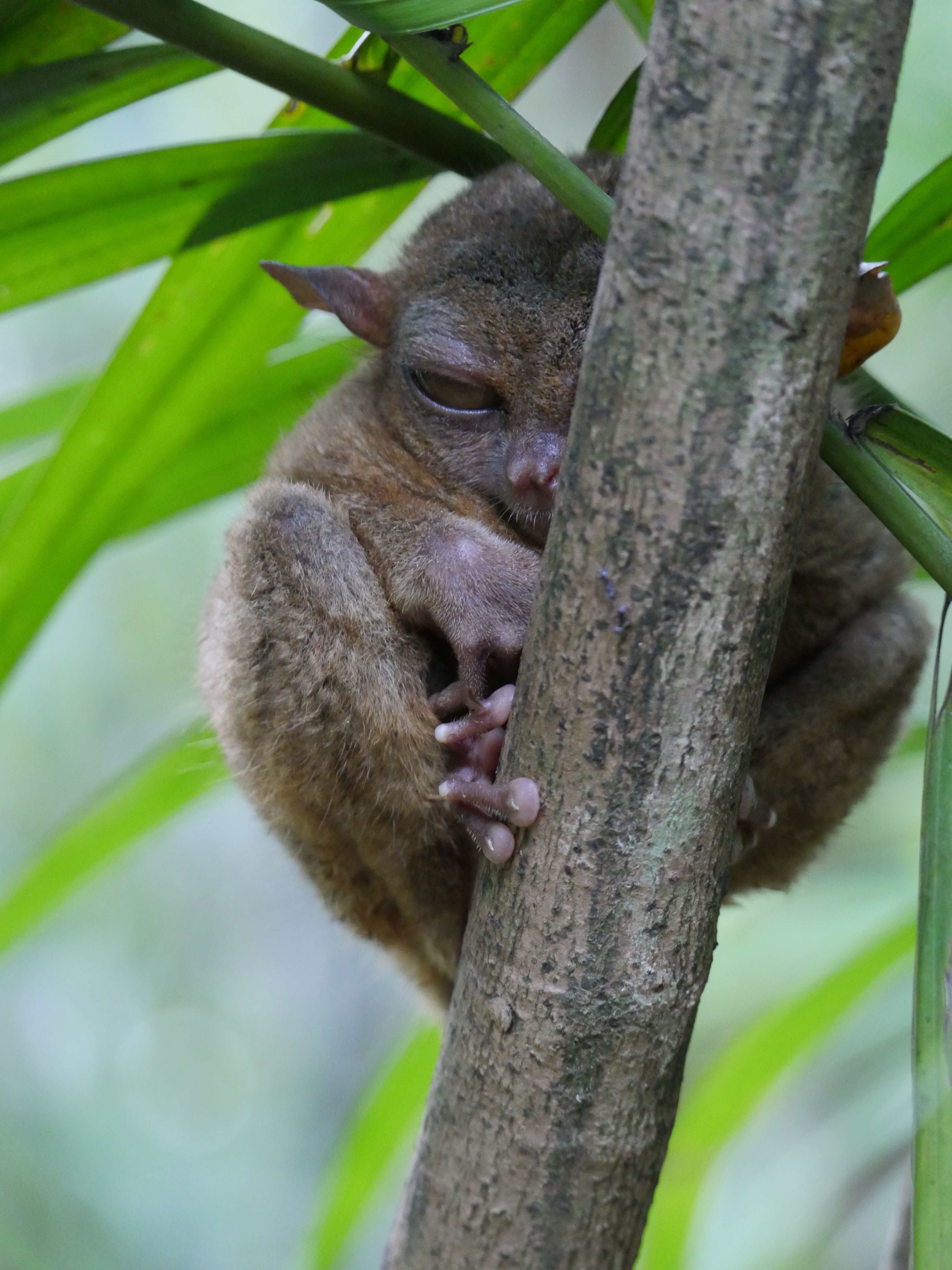 Le Tarsier est le plus petit primate au monde, du coup pour le voir c’est pas facile !! Heureusement, il y a des guides qui nous montrent où ils sont car sinon on pourrait passer la journée à les chercher dans la forêt sans jamais les voir !!