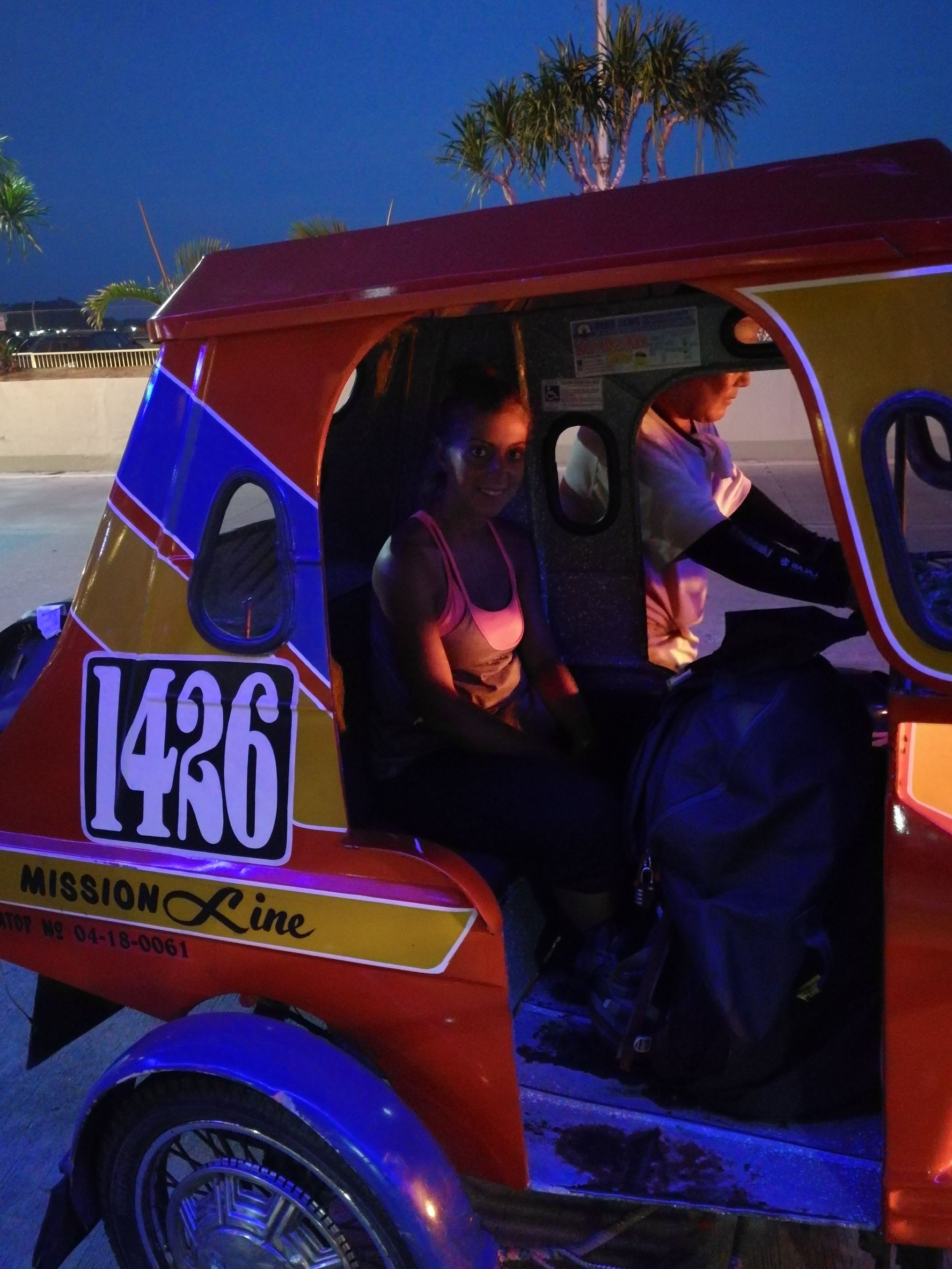 On passe le contrôle de sécurité, on paye la taxe du port, 25 pesos/personne, et la taxe pour les bagages, 100 pesos/bagage, et on attend patiemment. Si tout se passe bien on arrivera pour le coucher du soleil… C’était sans compter les 50min de retard du bateau !! On attend donc, debout, dans le hall où il y a 1 million de personnes. Bienvenue aux Philippines ! On souffle et on reste calme 🙂