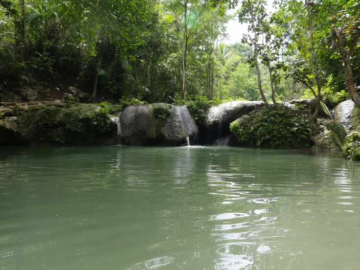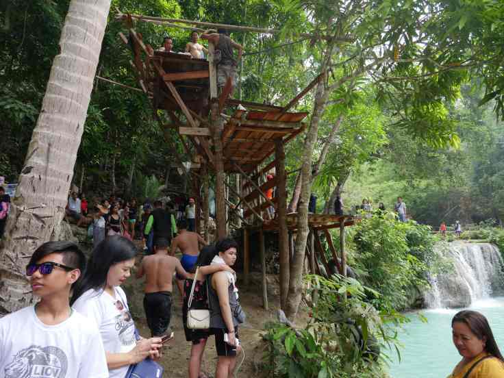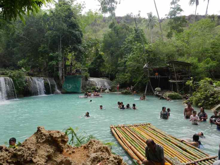 Environ 1h de scooter plus tard, voilà qu’on arrive à Cambugahay Falls ! Vous vous souvenez la vision d’horreur quand on est arrivé à Kawasan Falls ? Bah là pareil ! De belles cascades et du monde de partout !! En mode base de loisirs en plein été à Paris ! Pourtant on avait lu qu’il n’y avait pas grand monde… c’était sans compter qu’on était dimanche ! Le problème quand tu es en vacances longue durée, c’est que tu n’as aucune notion des jours. Du coup, on s’expose à ce genre de déconvenue… Ni une ni deux, on est reparti de ce « paradis« .