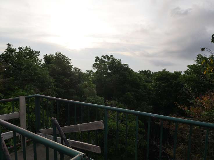 RIEN ! Absolument rien de rien !! La tour n’est pas assez haute pour voir le couché du soleil, du coup on voit bien les arbres en face de nous ! 🙂 Dire que des gens sur les blogs disaient « Ouah c’est trop bien comme spot pour le sunset… » Non mais la blague !!