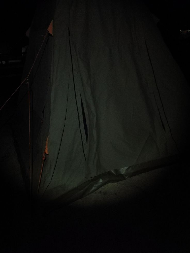 On arrive, de nuit, dans le camping du parc. Une dame, très gentille, me dit qu’on a de la chance car c’est le dernier emplacement ! C’est donc, dans le noir, que l’on montera pour la première fois notre « hutte ».