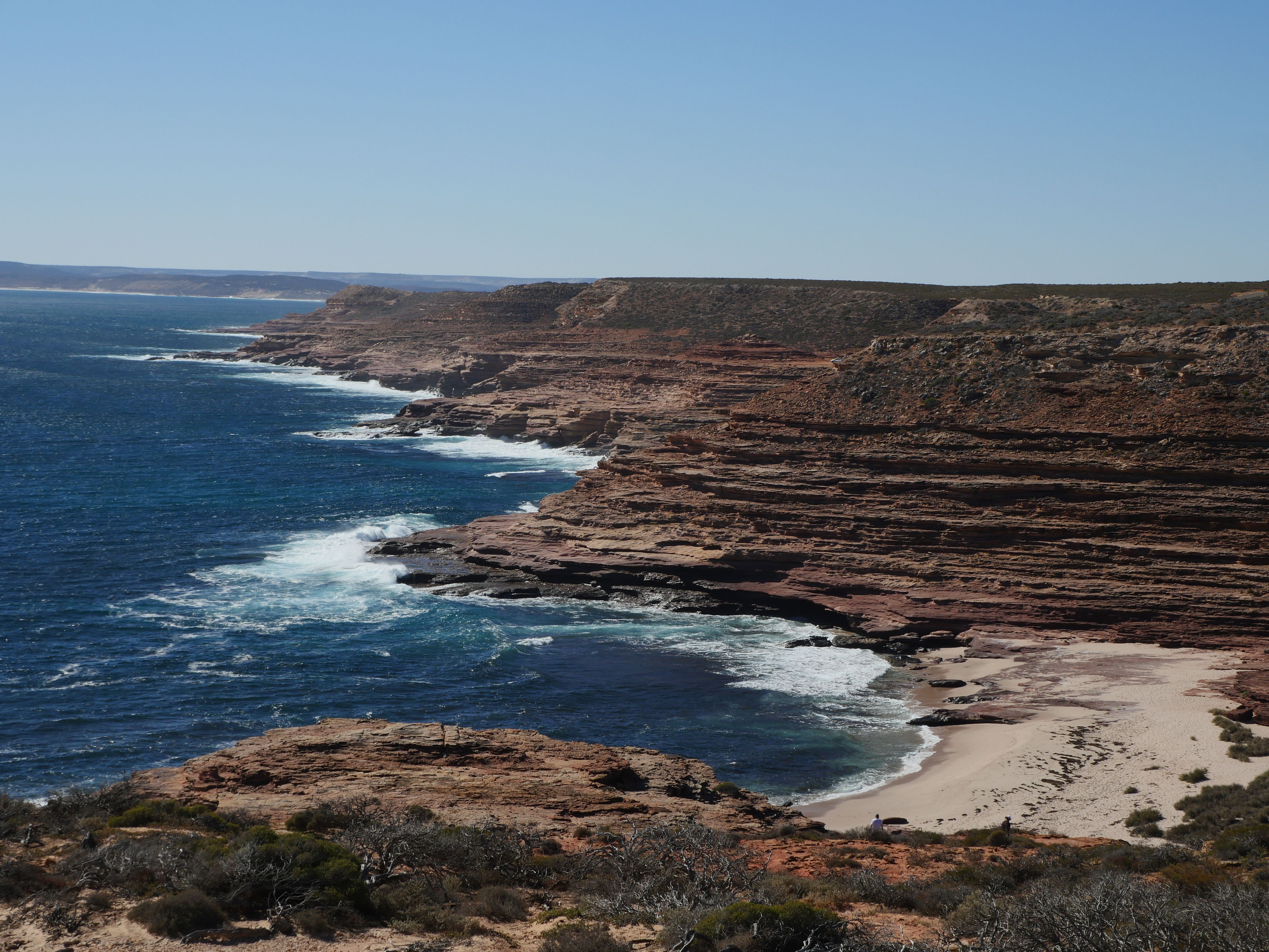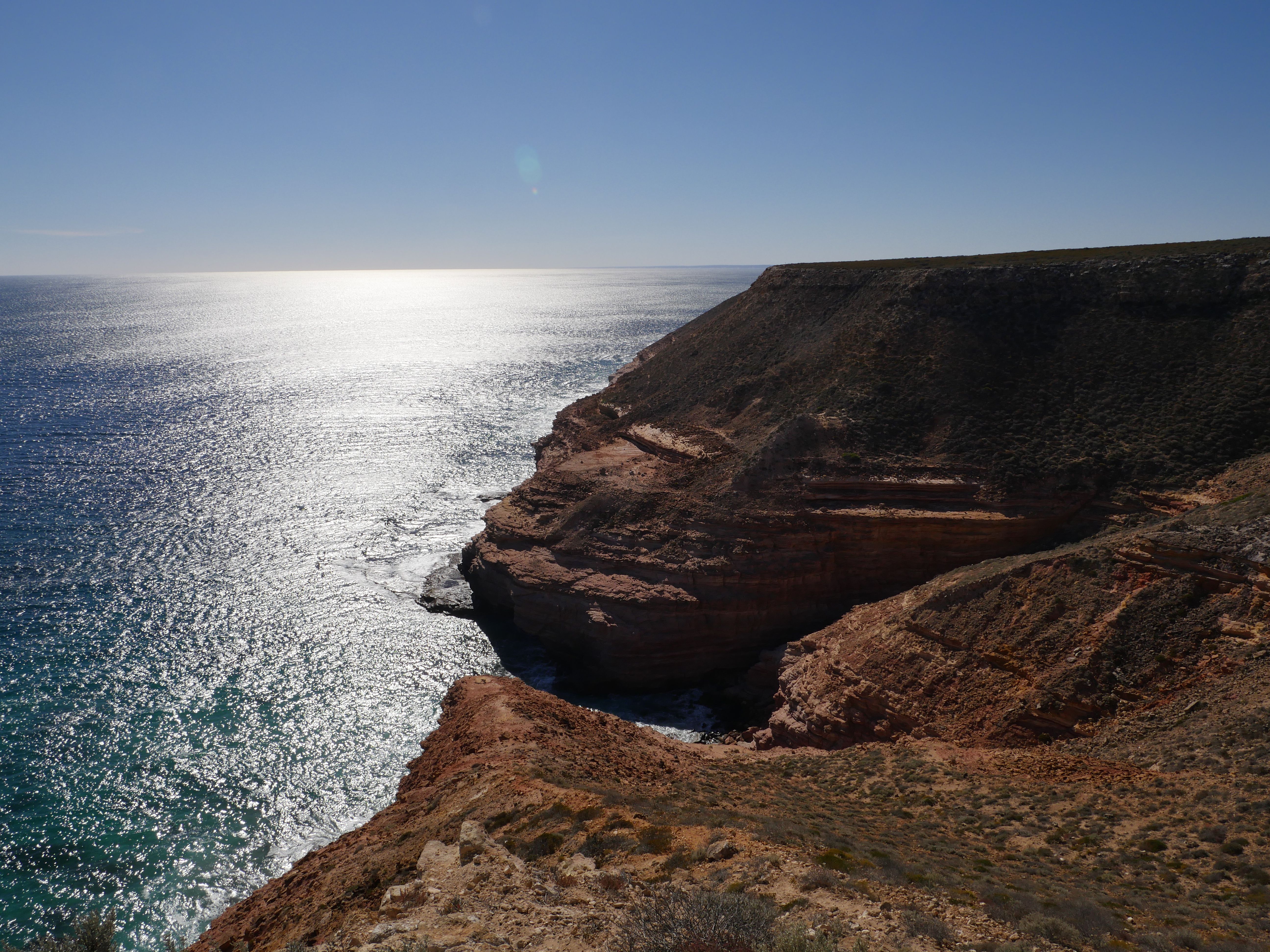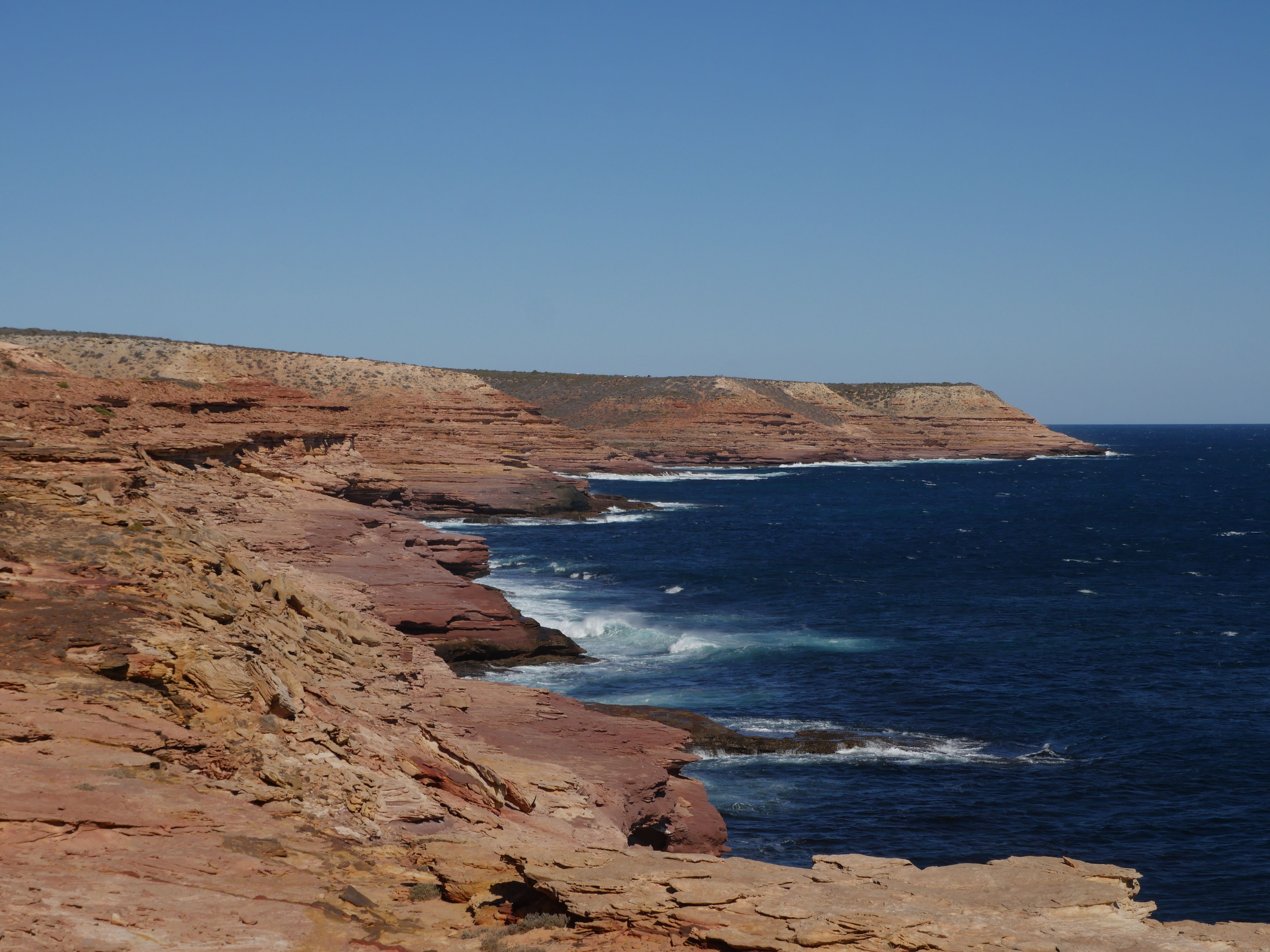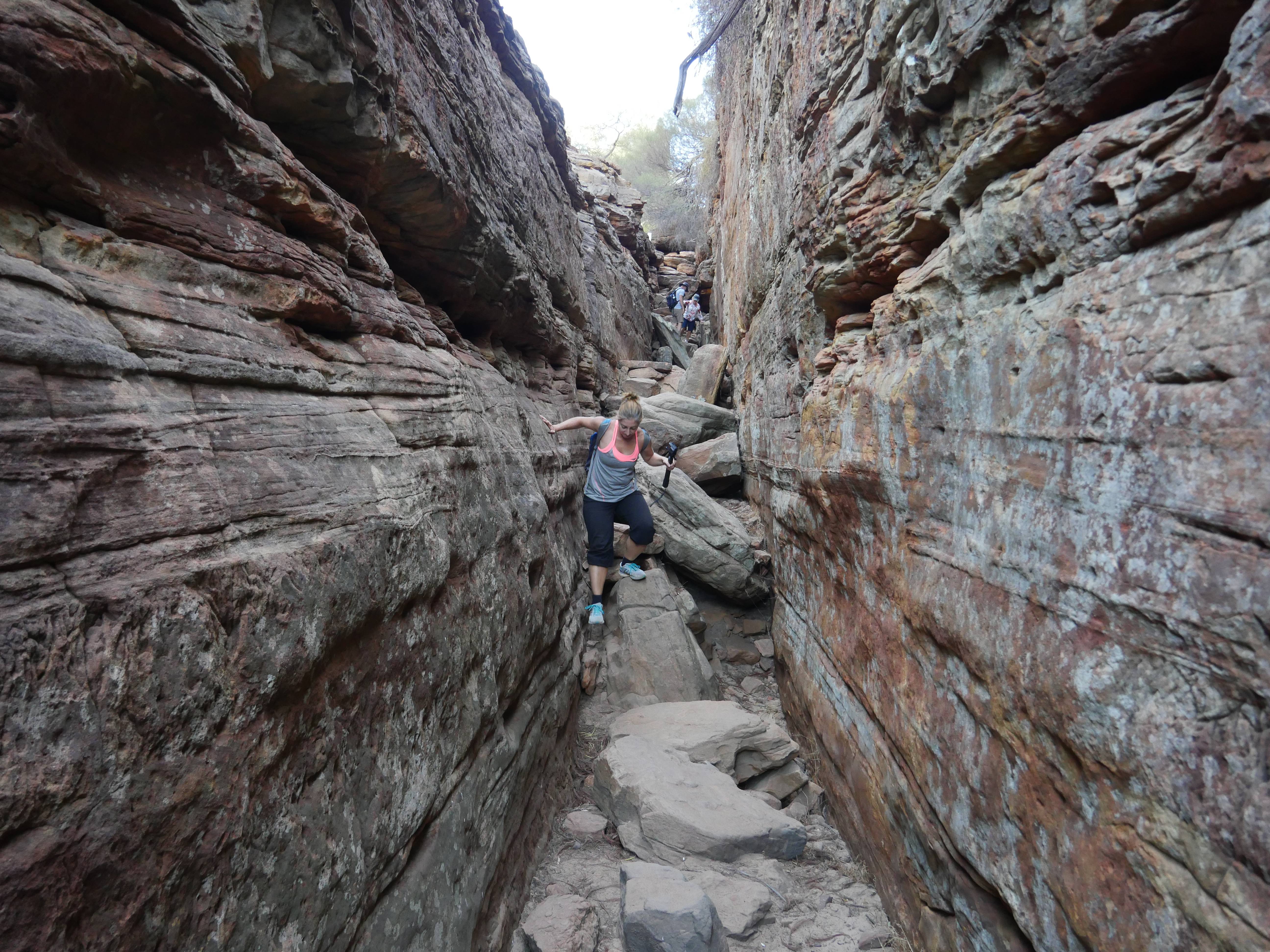 Après la visite de la côte de la veille, on va aujourd’hui visiter les terres de Kalbarri ! Et finalement, le Z-Bend Lookout est ouvert, cool ça sera notre premier arrêt. Et quel arrêt ! On avait jamais vu ça ! Un canyon en forme de U devant nous avec des couleurs rougeâtre. OUCH !