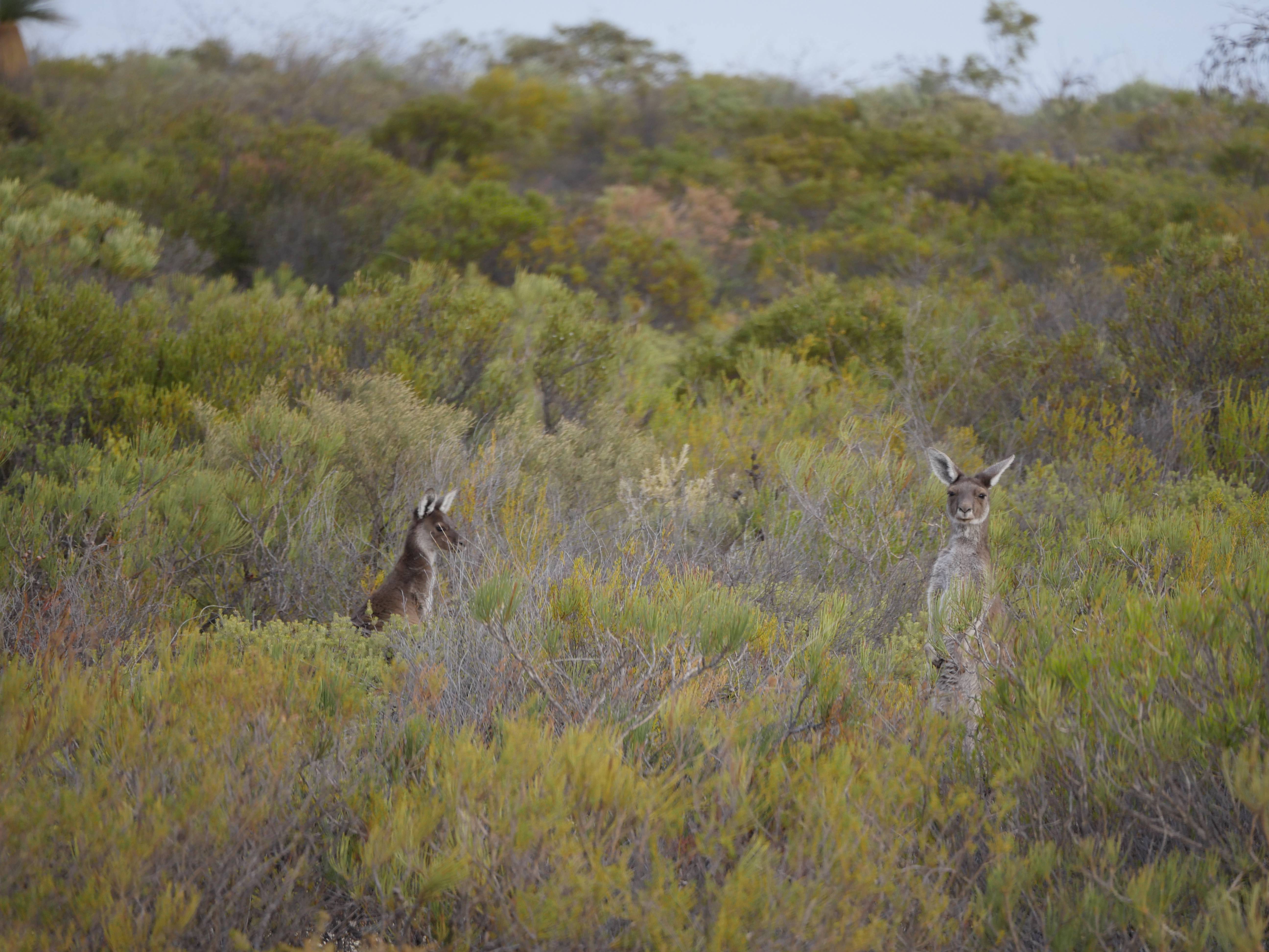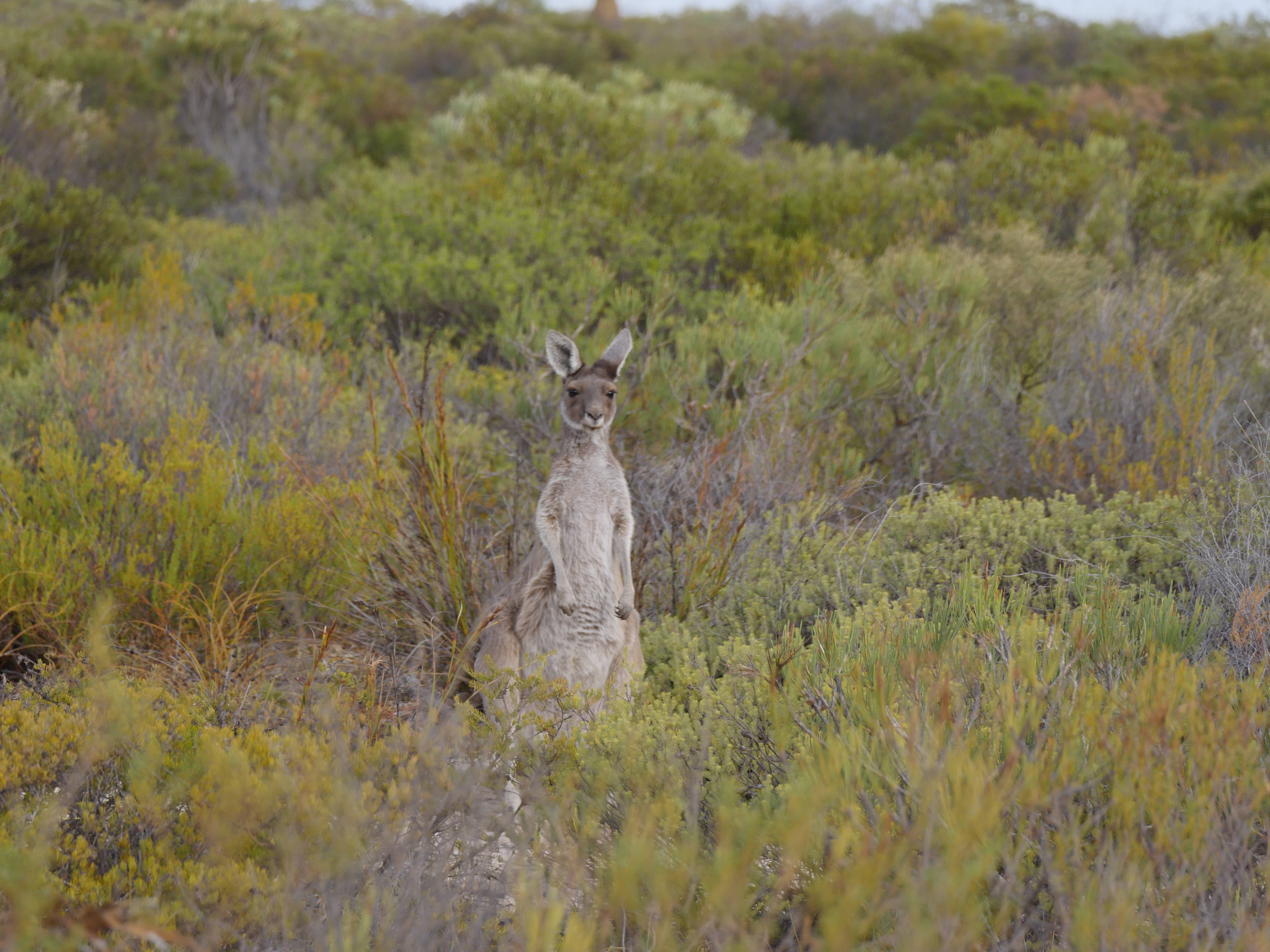 En retournant vers le camping, on est tombé sur le bord de la route sur deux magnifiques Kangourous ! Ils n’avaient absolument pas peur, sauf quand on s’est approché de trop près, alors ils ont fait des petits bonds pour s’éloigner. C’était super de voir ça car totalement inattendu ! Ria était aux anges, elle qui depuis trois jours me répétait « Mais où on peut voir des kangourous ? Je ne pars pas d’Australie sans en voir ! Dégoûtée j’en ai toujours pas vu« . Bah voilà c’est fait, deux d’un coup 🙂