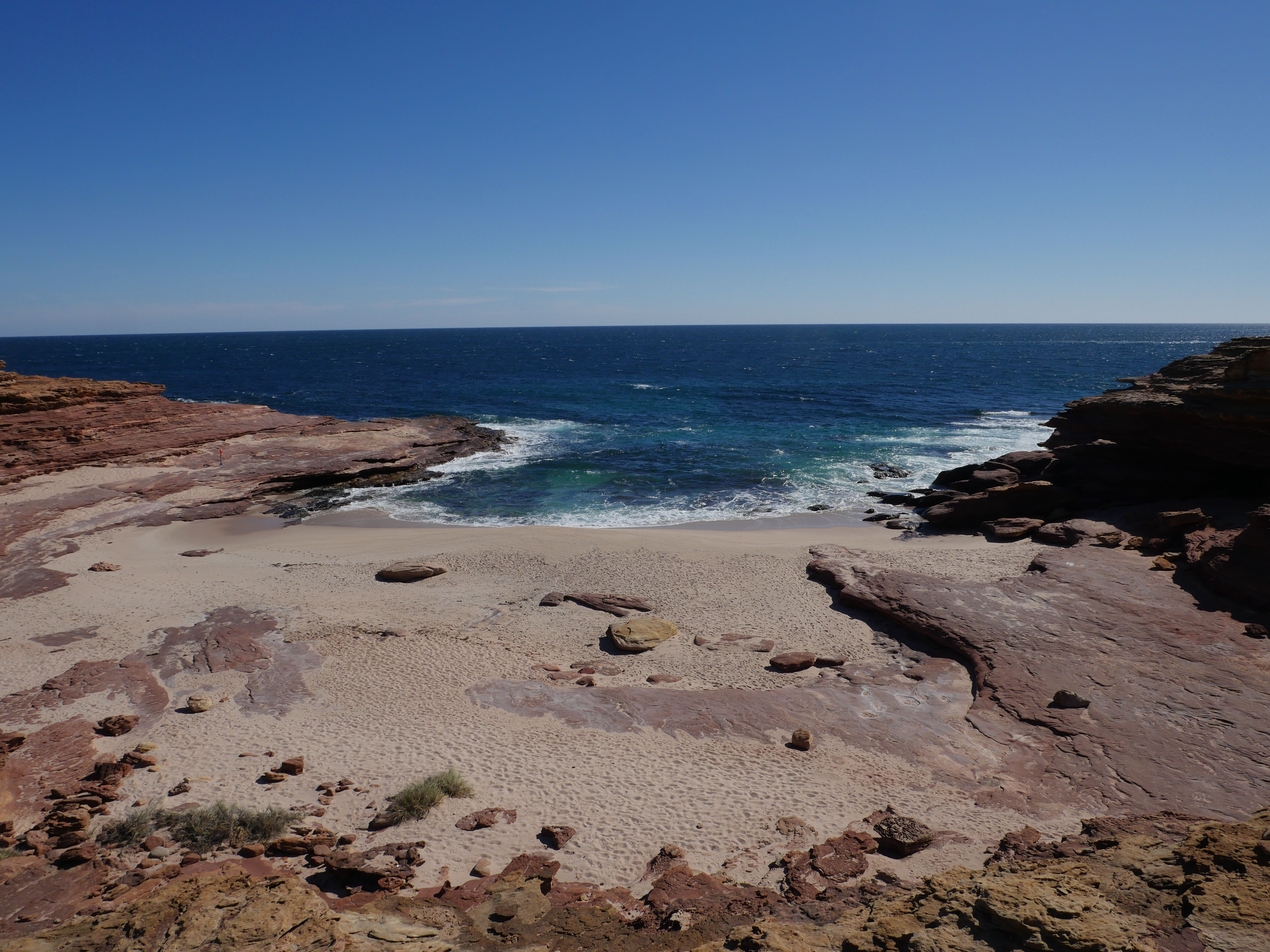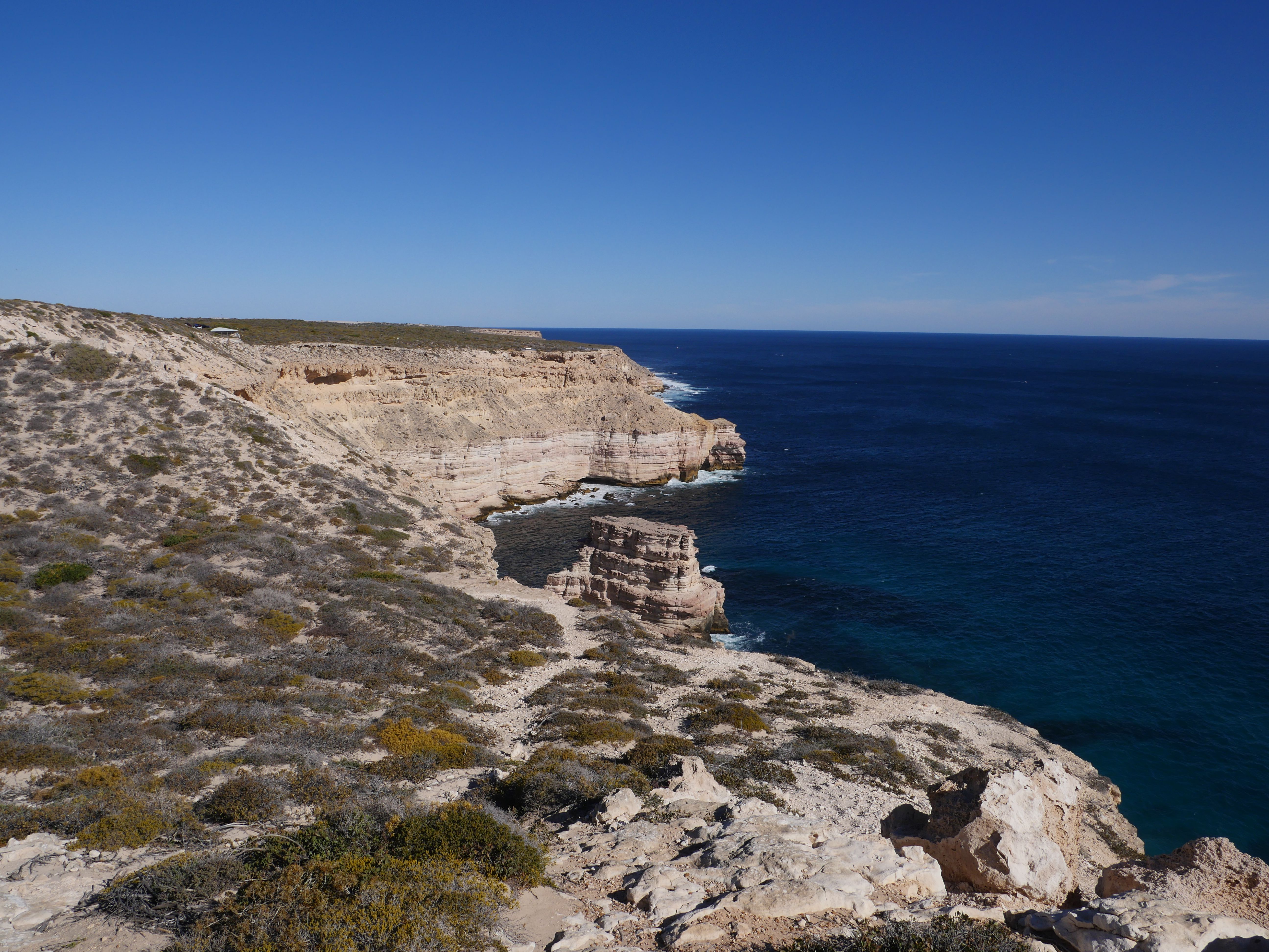 Après notre escapade à Yanchep et Namburg, nous voilà maintenant à Kalbarri ! On avait décidé de dormir dans un camping, notre premier gratuit, le Galena Camping. Cela ressemblait grandement à une immense aire d’autoroute avec des toilettes « sèches ». On pensait qu’il était à 20km du parc… Perdu ! Il était plutôt à 70km ! Mais bon à l’échelle de l’Australie, qu’est-ce que c’est que 50km de plus dans un pays aussi grand que toute l’Europe ?!