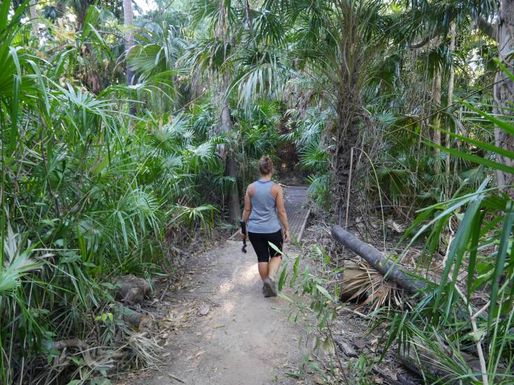Puis, une petite douche gratuite et vaisselle en centre-ville dans une aire, avant de rejoindre le nord du parc, et plus précisément la petite randonnée de Bardedjilidji, qui longe East Alligator River. Marcher dans une forêt dense à proximité d’une rivière à crocodiles, à observer chaque recoins et être attentif au moindre bruit, est vraiment quelque chose de magique et effrayant en même temps. Mais heureusement, ou malheureusement, pour nous, on n’a pas vu de « Salties« .
