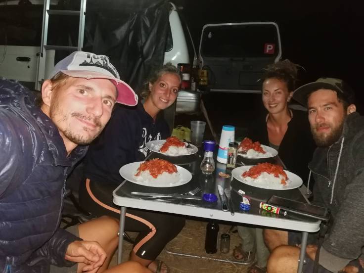 On a un peu de nostalgie quand on repense à tout ce qu’on a traversé en presque 2 mois. On fera la connaissance de Jonathan et Dounia dans le camping, avec qui on aura mangé un bon repas ! Avec en prime, un dernier coucher de soleil.