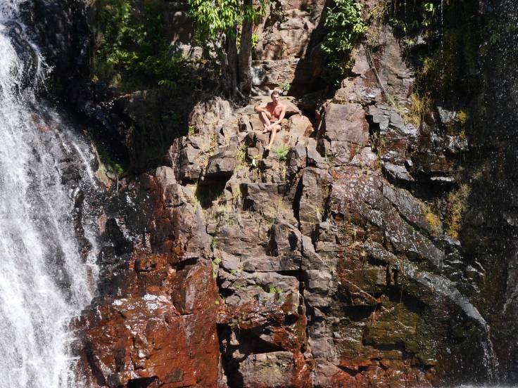 Tout cela nous aura finalement conduit à une très jolie cascade. Mais, dommage, l’eau était glacée !!! Impossible de rester trop longtemps dedans. Et puis, comme à Florence Falls, il n’y avait pas d’endroit pour bien se poser.