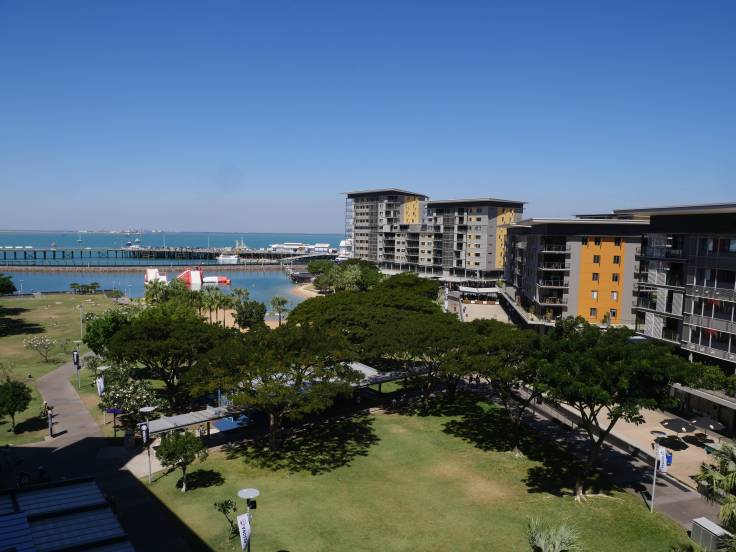 - Darwin city hôtel promo pour la chambre king size bien confortable et au calme 4 nuits pour 323 euros. Reservation faite ay dernier moment le seul qui restait moins cher et disponible. Il y a une piscine pas beaucoup de place pour se poser et à l’ombre et une salle de sport à côté de l’hôtel.