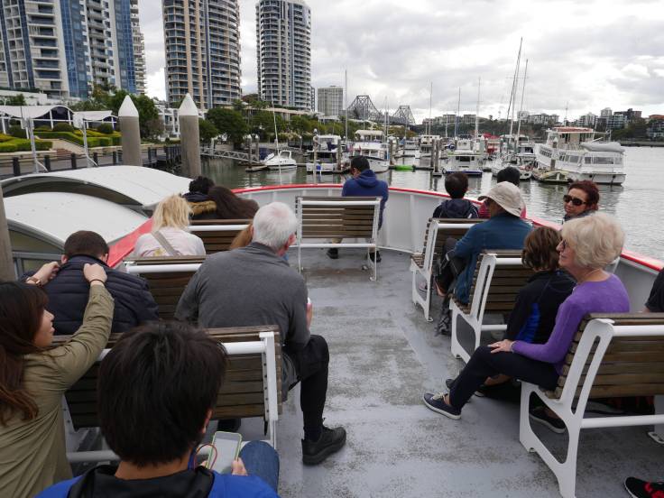 Pour terminer notre séjour à Brisbane, on a également emprunté la navette gratuite, le « City Hooper« . Le départ était du côté de l’embarcadère de Sydney Street. C’est génial ce type de transport. Cela permet, en seulement 1h environ, de rejoindre le Victoria Bridge. Mais surtout, la traversée offre de super points de vue sur la ville.