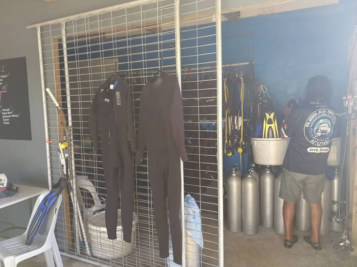 La plongée de son côté, chez Bubbles, le seul centre de plongée de l’île, coûtera 170 dollars. C’est un peu cher, on verra si on peut.