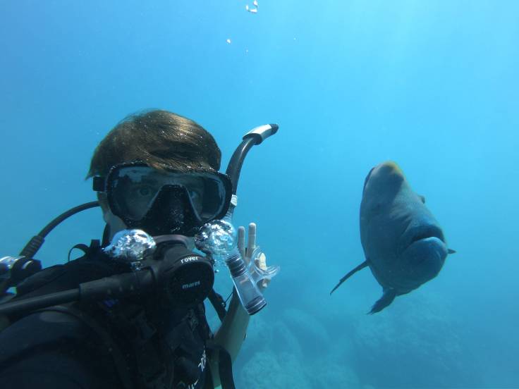 Pour l’instant, un peu déçu. Quasiment aucun poisson, des coraux à moitié mort. Une jolie grotte c’est tout. Bref, cela ne restera pas un souvenir inoubliable.