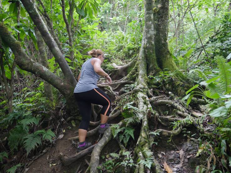 Notre dernier jour aux Îles Cook ! Et comme d’habitude, le ciel est « grisailleux« . Après un long, et bon, petit-déjeuner au café LVB, on s’est motivé pour aller faire la randonnée qui traverse l’île : Cross Island Walk.