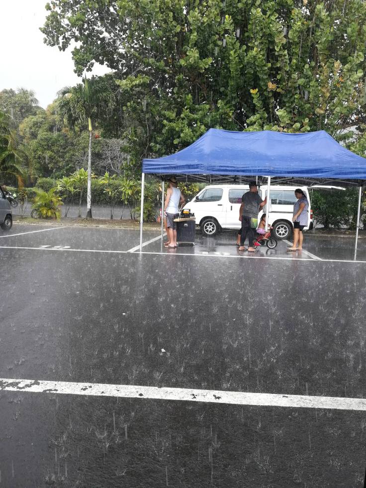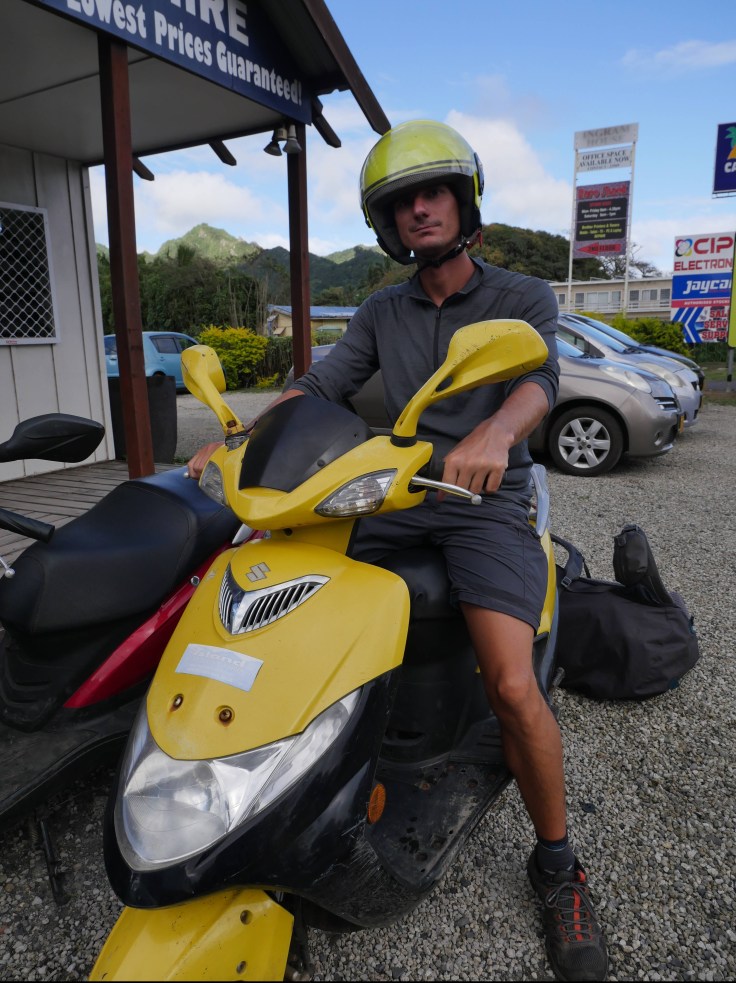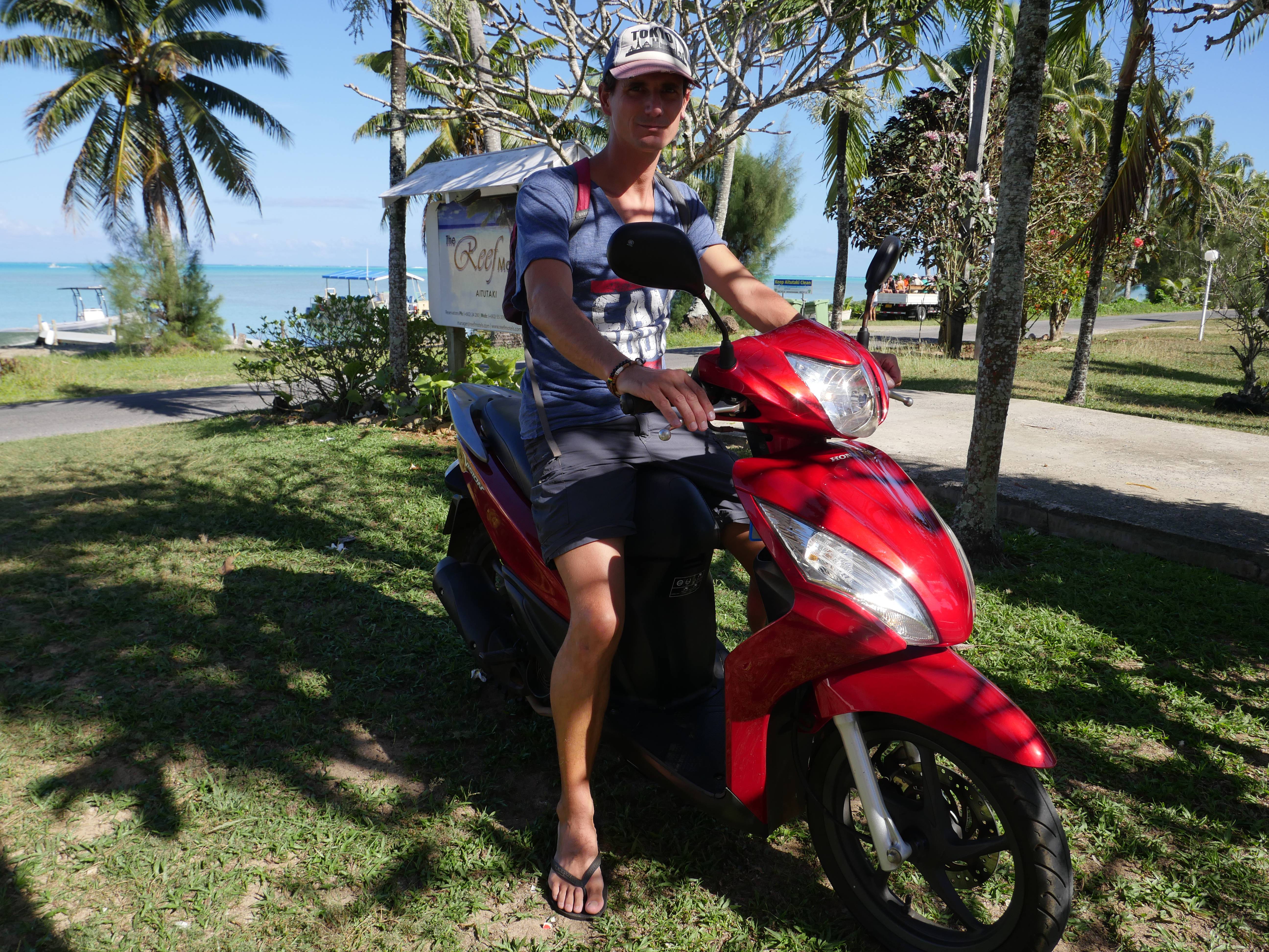 Une fois à Rarotonga, sous les nuages, un gentil monsieur nous a pris en stop, alors qu’on avait rien demandé, pour nous amener dans le centre ville, où on a pu louer un scooter. Super sympa 🙂