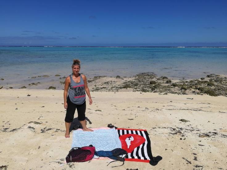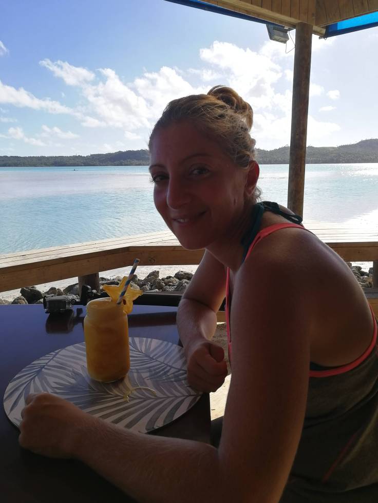 Un petit verre pour se rafraîchir sous ce grand soleil… 🙂 Le temps ici est bien meilleur qu’à Rarotonga. Sûrement parce que c’est moins montagneux.