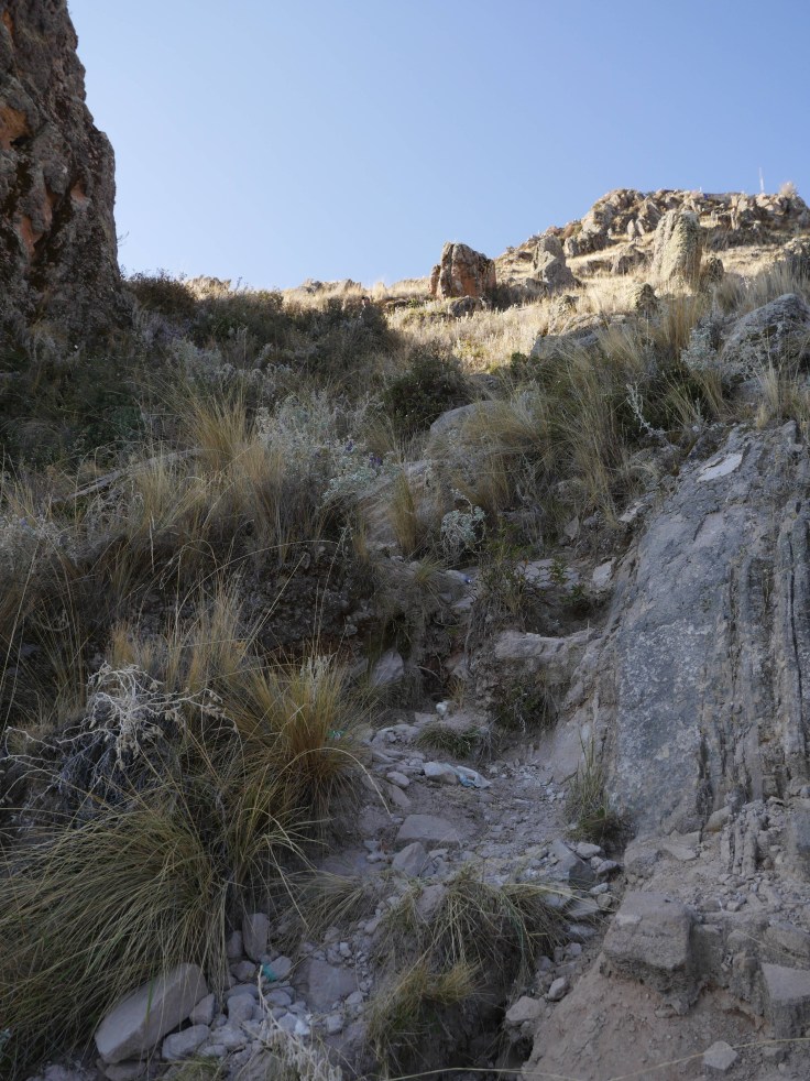 On ne peut pas dire que l’on ait pris le chemin le plus facile, loin de là, très pentu et glissant ! Un chemin au « feeling », à deviner plus ou moins à ce qui ressemblerait le mieux à un chemin.