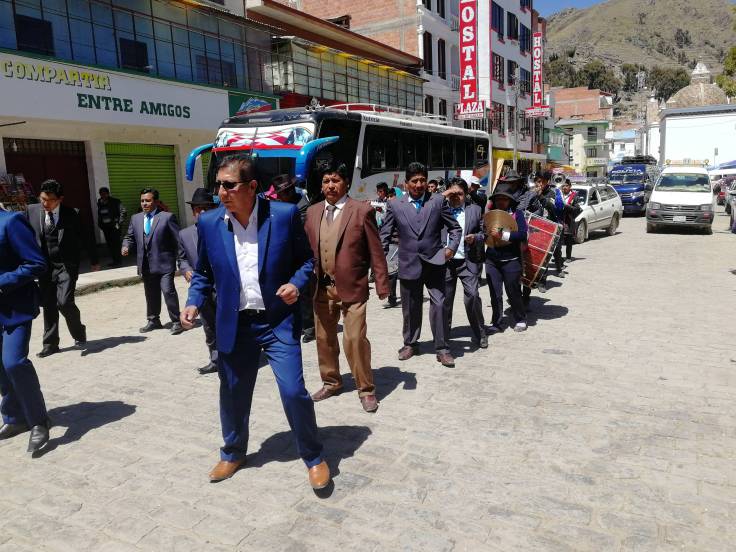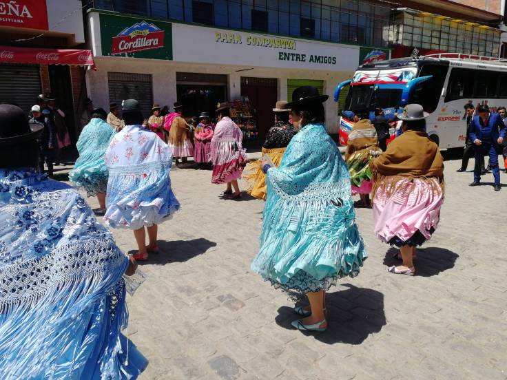A notre halte à Copacabana, sur le trajet du retour, on aura tout de même eu de la chance car on a pu assister à la cérémonie de bénédiction des voitures que l’on avait raté. Ils sont fous ces Boliviens :-). On a également pu voir une petite fête où les hommes et les femmes étaient déguisés et dansaient dans la rue. Super convivial et chaleureux !