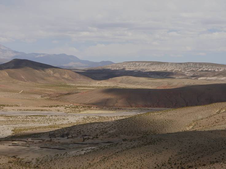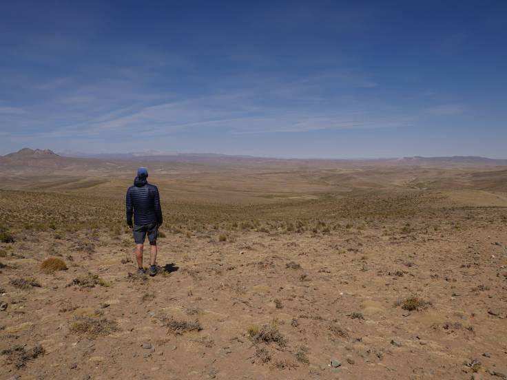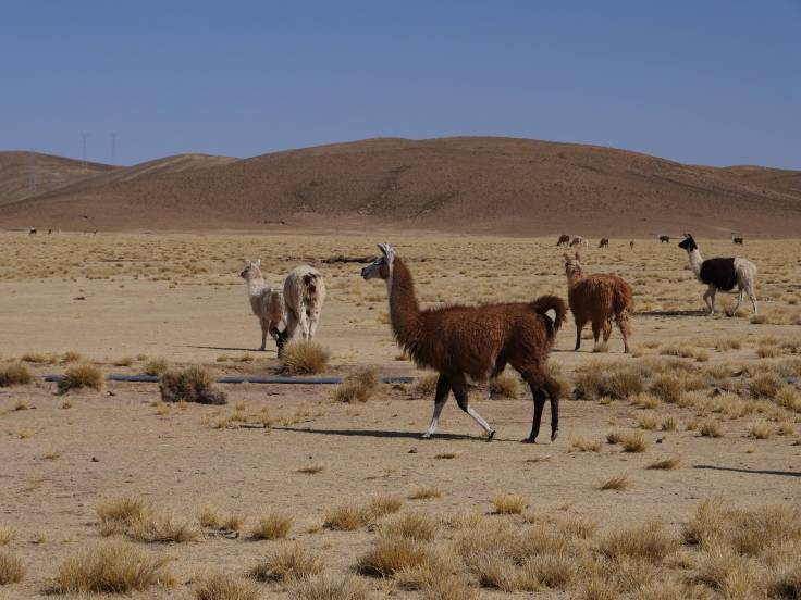 On reprend ensuite la route en zigzag pour faire un nouvel arrêt, environ 30min plus tard à Agjanpampa, dans un décor encore plus surprenant !! Le désert à perte de vue et des lamas, qui sont bien difficiles à approcher car très peureux. Même avec ma vitesse de pointe légendaire, je n’arrive pas à les approcher.