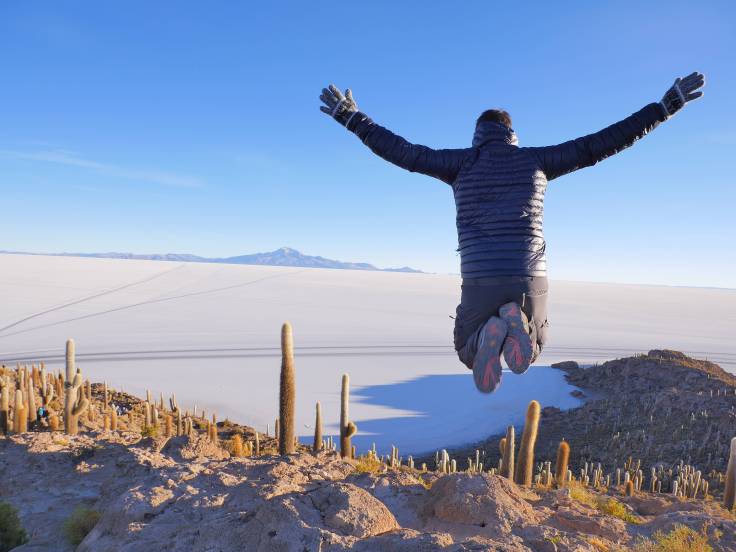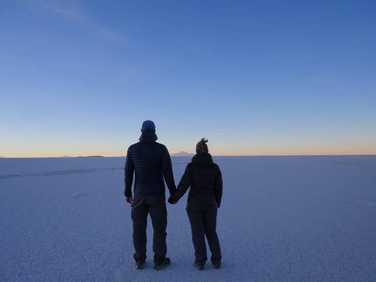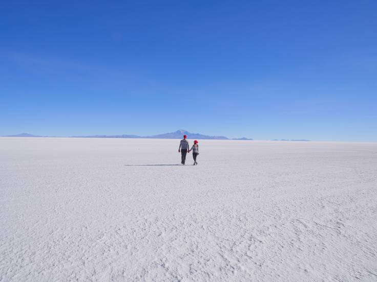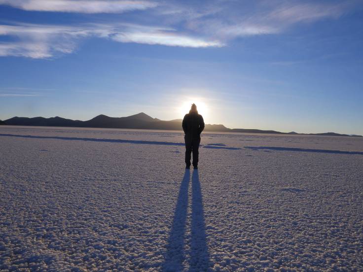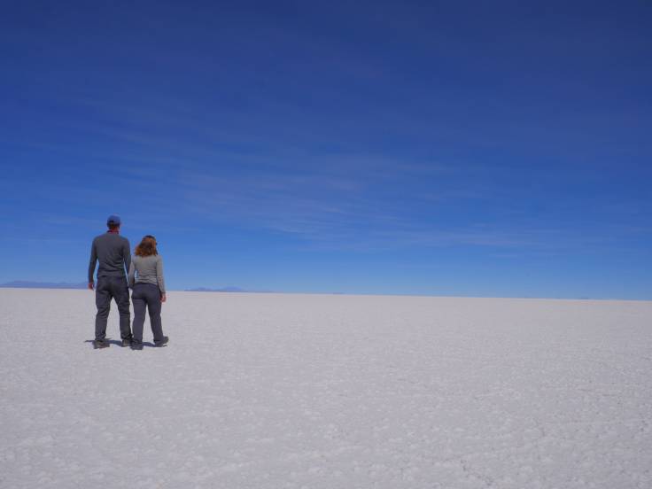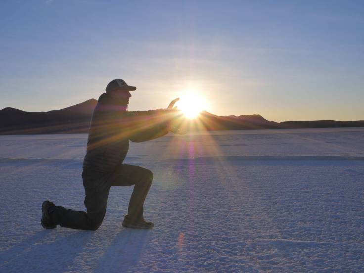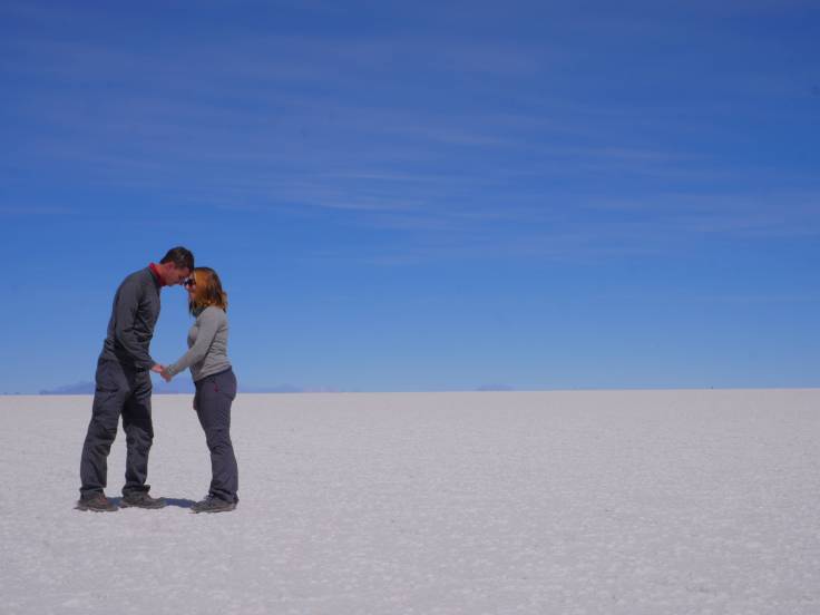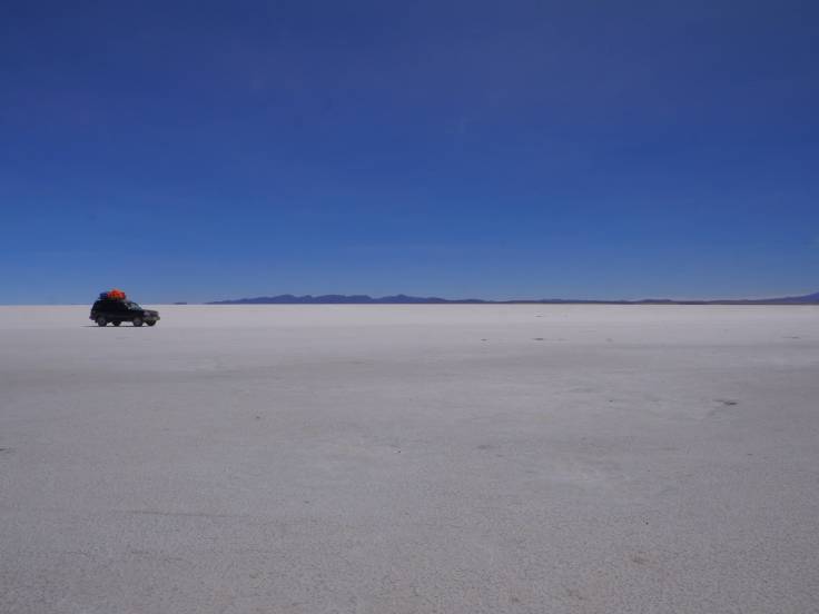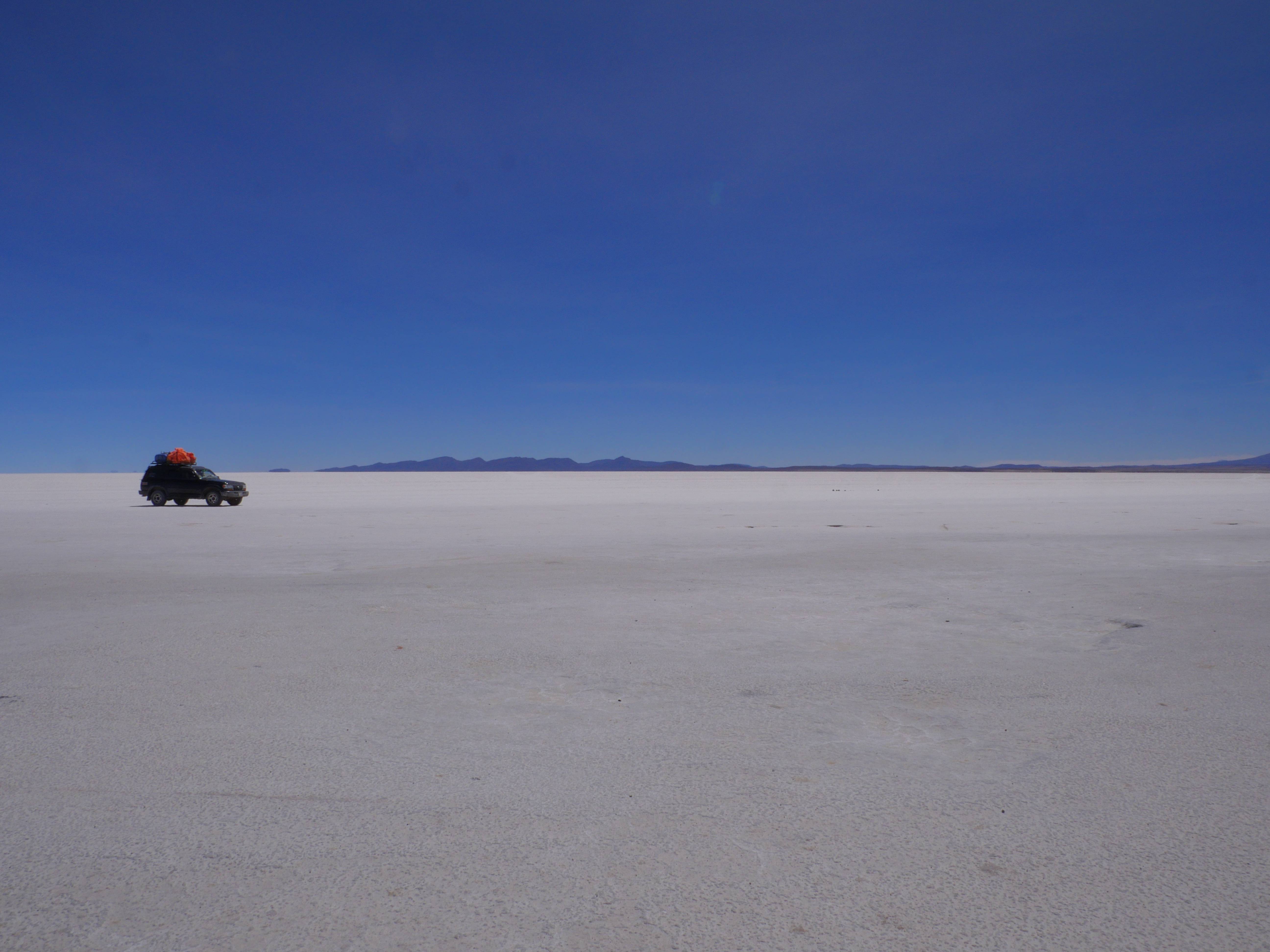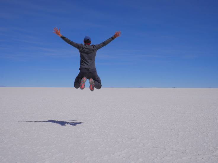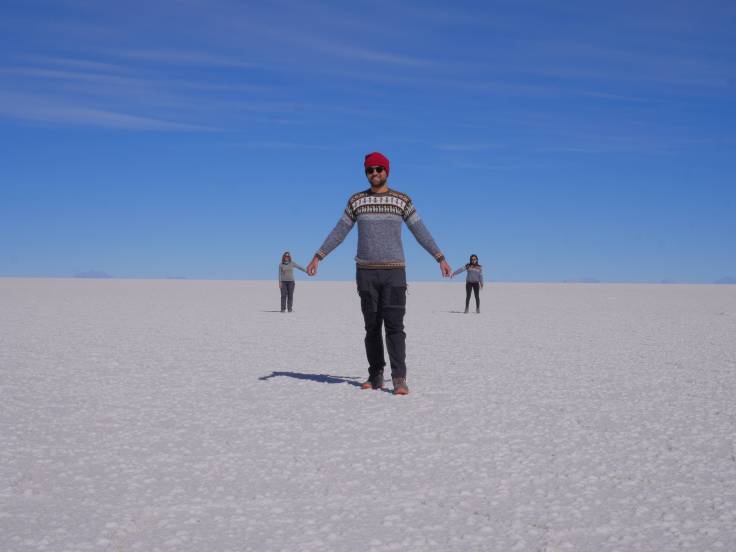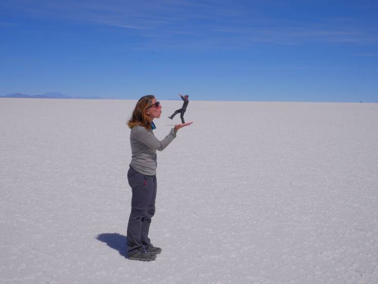 Nous voilà maintenant parti pour LE moment pour lequel on a fait l’excursion, et que l’on attendait tant : la séance photo dans le Salar de Uyuni ! Le calme et le silence sont vraiment dingue, on a l’impression d’être seul au monde. Et le sel ressemble vraiment à de la neige.. Où sont mes skis ? 🙂