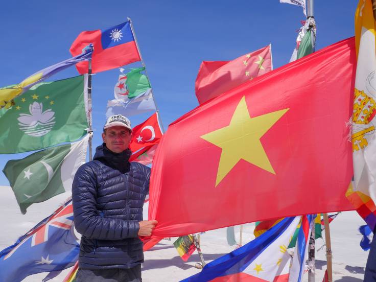 Une petite séance photo avec les pays que l’on a traversés, sauf Laos, Cambodge et Iles Cook qui n’y étaient pas.