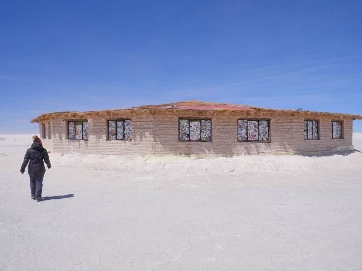 On a roulé ensuite pendant bien 20min, dans ce décor de rêve, pour arriver à l’hôtel de sel, le premier qui a été construit. Il a été cependant abandonné et transformé en petit musée car apparemment les touristes laissaient derrière eux trop de déchets. Du coup, les gestionnaires du parc l’ont fermé pour éviter de polluer le site.