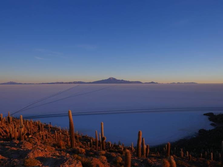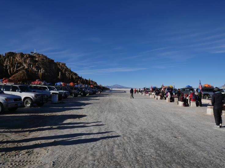 Aïe !!! Un réveil à 4h45 ça pique !!! On prépare nos affaires et à 5h30 on file !! On roulera pendant une petite demie heure à travers le désert pour atteindre l’île aux cactus (qui porte vraiment bien son nom) !