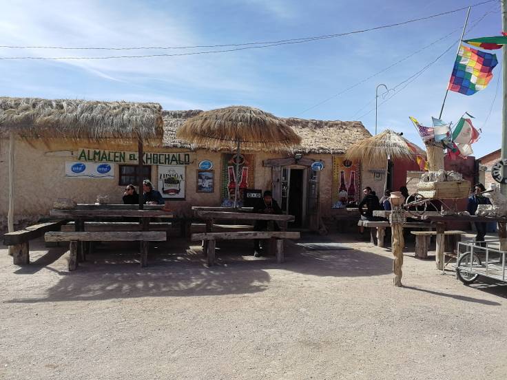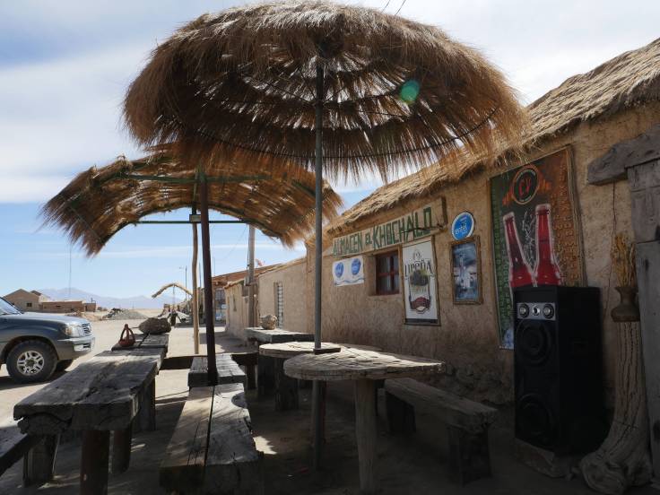 Juste avant d’arriver, on a fait un petit arrêt dans un « village » Julaca pour boire une bière au cactus. Très agréable de boire une boisson fraîche dans le désert !