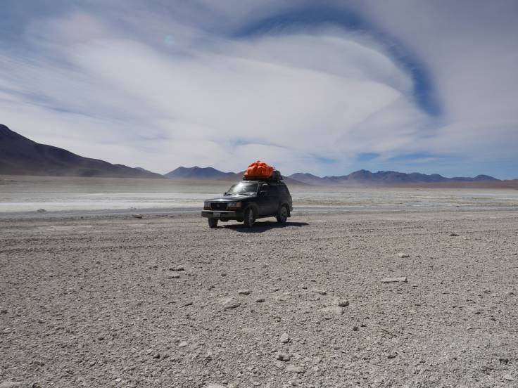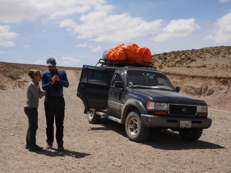 Après notre court séjour à Tupiza, partagé entre la recherche d’une agence et une chouette balade à cheval, c’est aux aurores, 6h30 que notre Tito, et notre cuisinière privée Amelia, viennent nous chercher pour une excursion de 4 jours à travers le désert Bolivien.