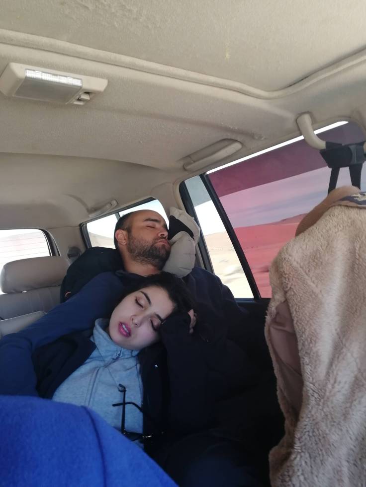 Fort heureusement, la route pour y arriver était SUBLIME, avec le désert DALI, qui est le panorama d’une chaîne de montagnes. Vraiment très très très beau et avec des couleurs de partout, on dirait vraiment une peinture. J’ai pu initier Manal aux sauts photogéniques, mais elle a encore des progrès à faire 🙂