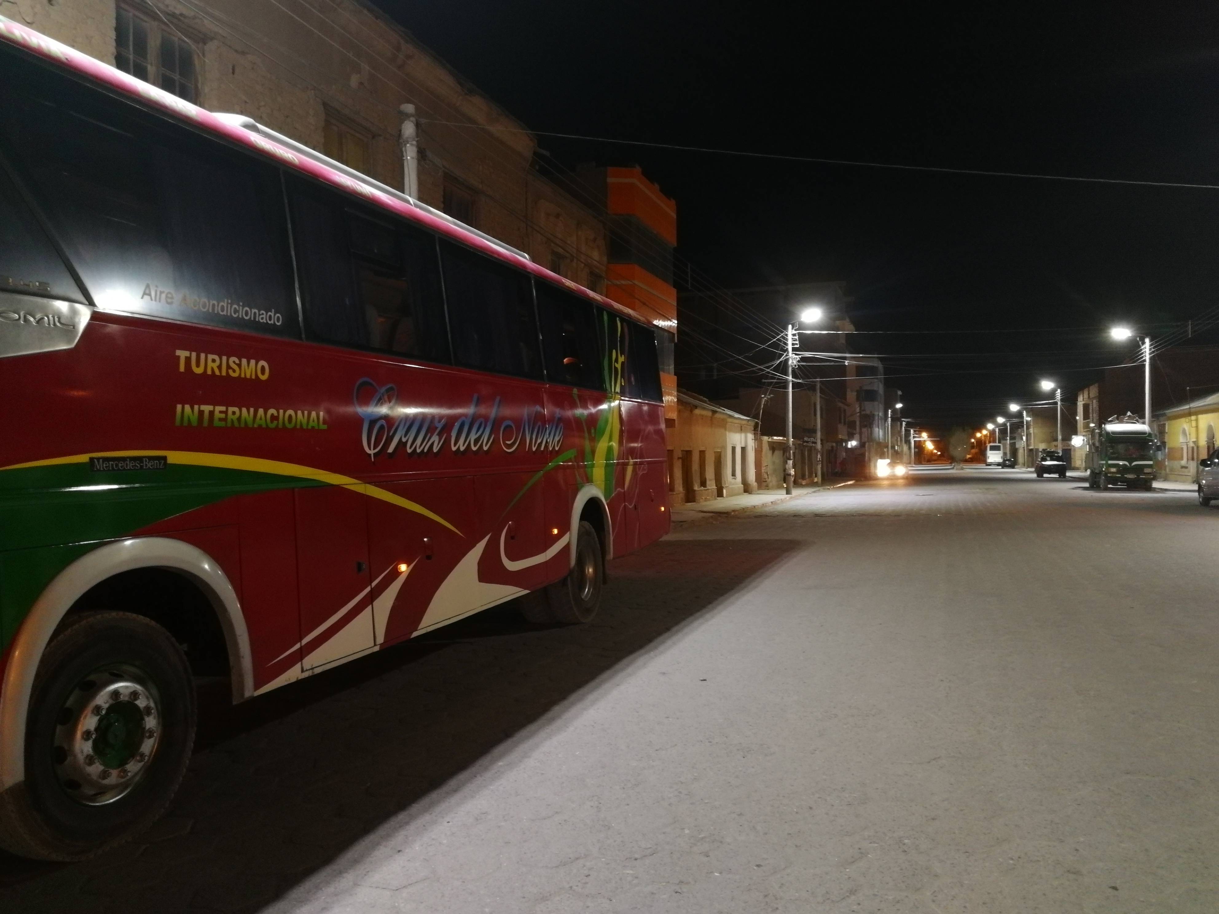 Après avoir vécu une superbe excursion dans le Salar de Uyuni et le Sud Lipez, nous voilà partis à 5h30 du matin, avec la compagnie de bus Cruz del Norte, en direction de Calama au Chili !